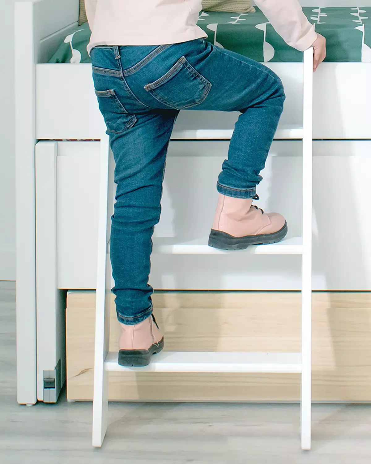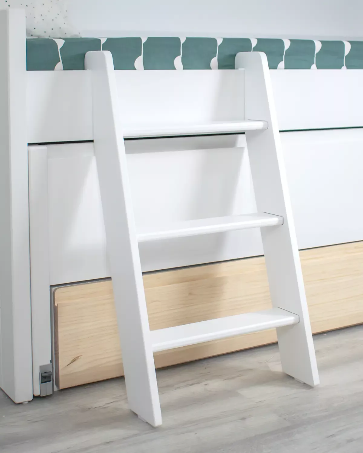 Dá aos teus filhos a liberdade de aceder às suas camas de forma segura e confortável com a nossa escada, projetada especificamente para se adaptar aos modelos de camas compactas da Bainba. O seu design intuitivo permite que os mais pequenos subam e desçam sem qualquer inconveniente, garantindo o seu bem-estar e a tua tranquilidade.