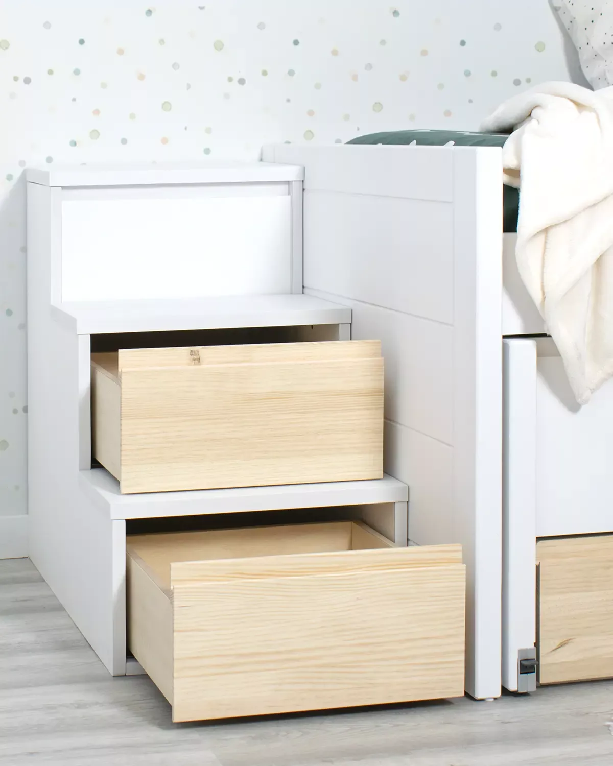 O complemento perfeito para o quarto do seu filho. Além de facilitar o acesso à sua cama, também oferece uma solução de arrumação inteligente.