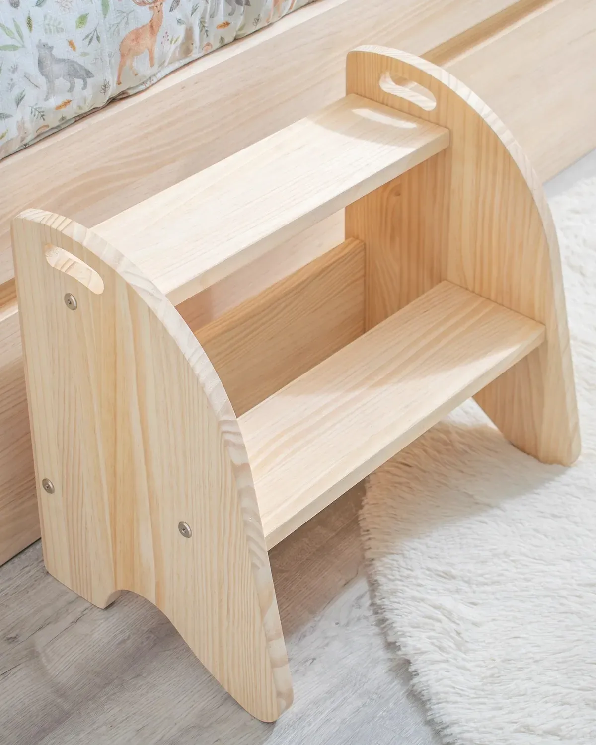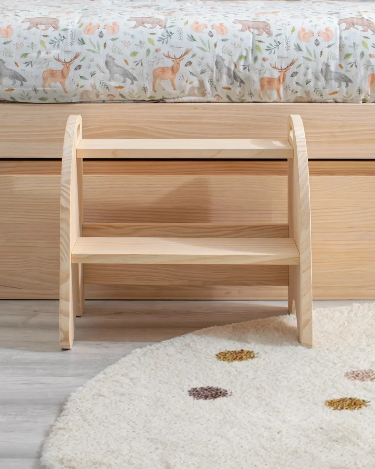 A nossa escada foi desenhada para as camas infantis da Bainba, garantindo um encaixe perfeito e seguro.