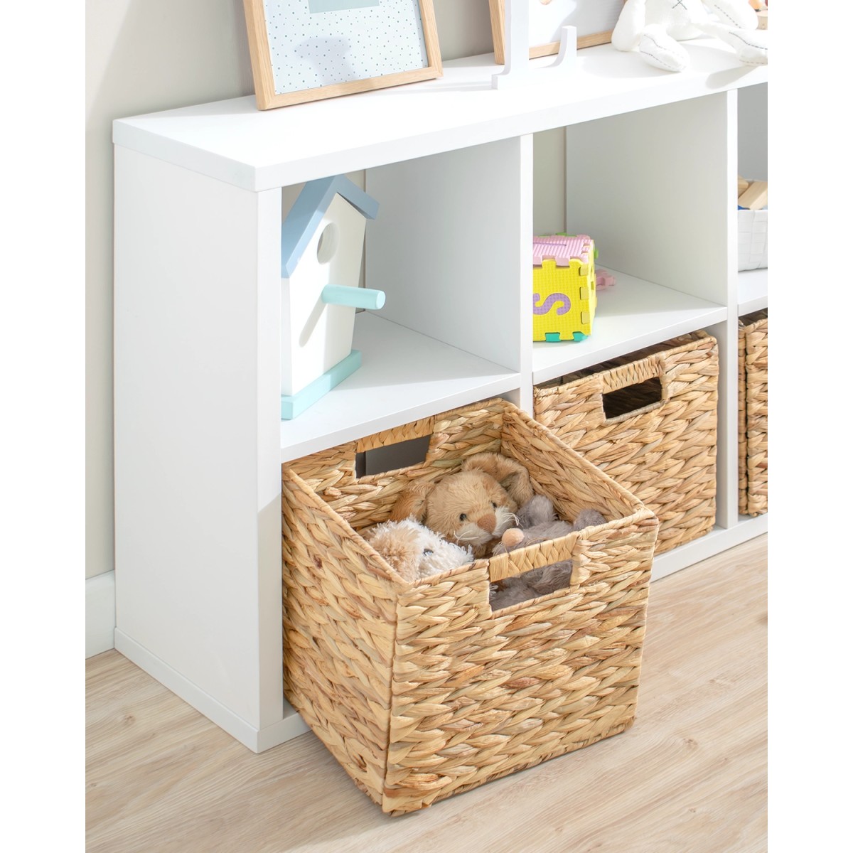Cestos de vime: Inclui 4 cestos de vime que dão um toque especial ao móvel e são perfeitos para guardar brinquedos, livros, entre outros.