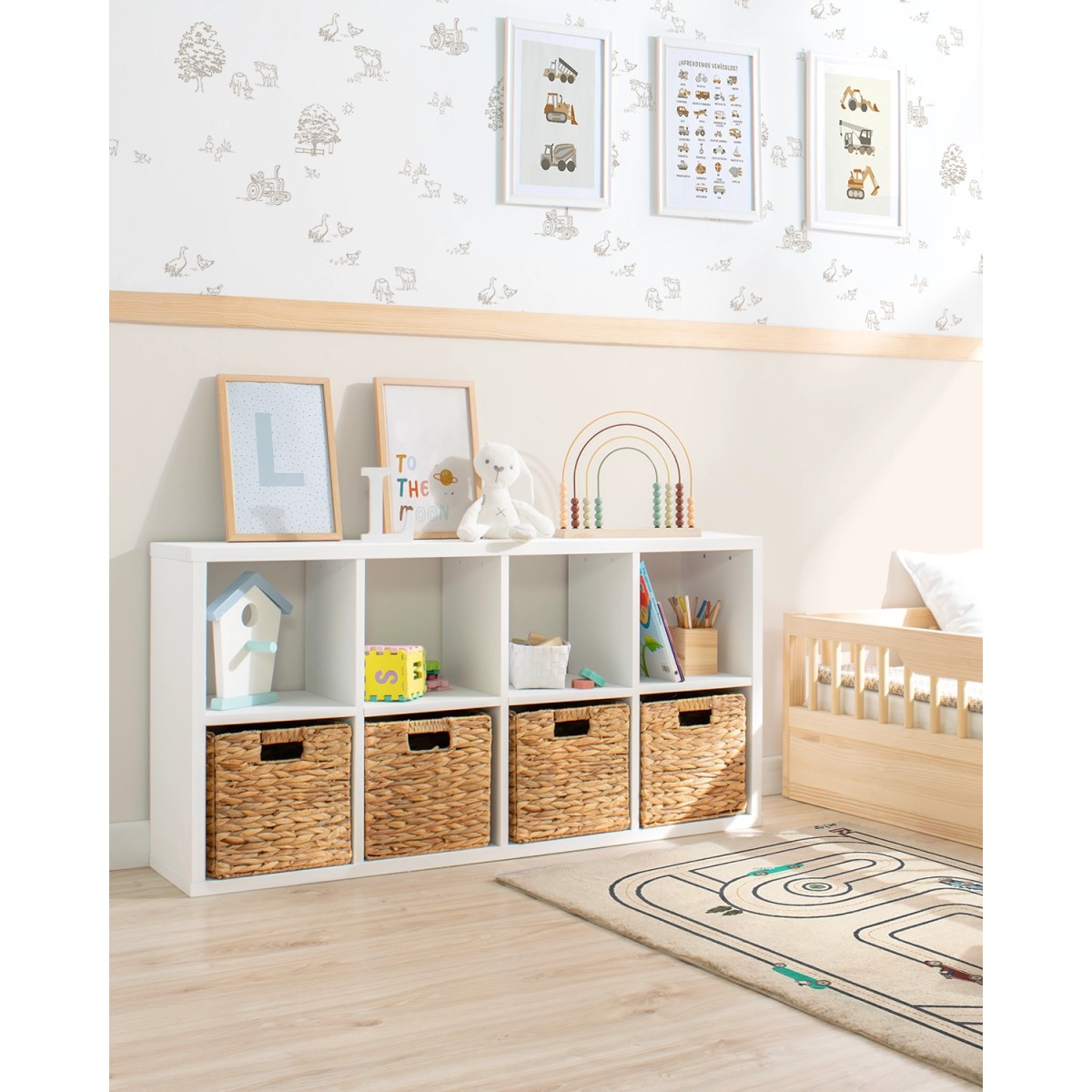 Design Infantil: Graças ao acabamento lacado em branco, combinado com a cor natural dos cestos de vime, adapta-se facilmente a qualquer espaço, seja o quarto infantil ou qualquer outra zona da casa.