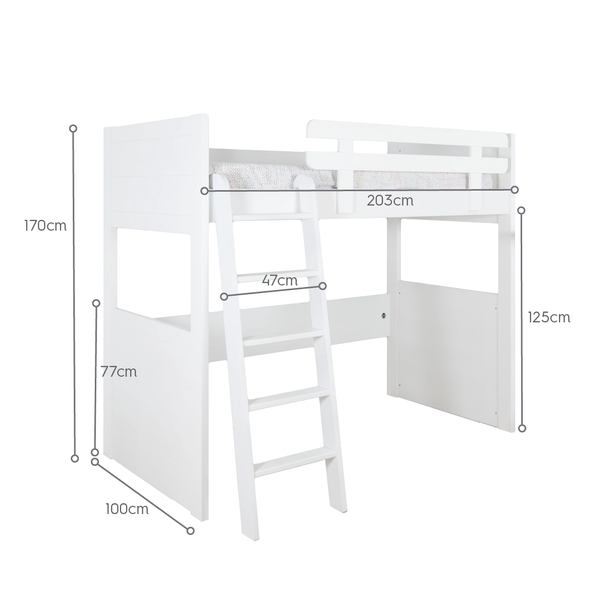 Para os beliches que incluem cama nido, recomendamos um colchão de 15 cm para a cama inferior, de forma a permitir guardar a cama com a roupa colocada.