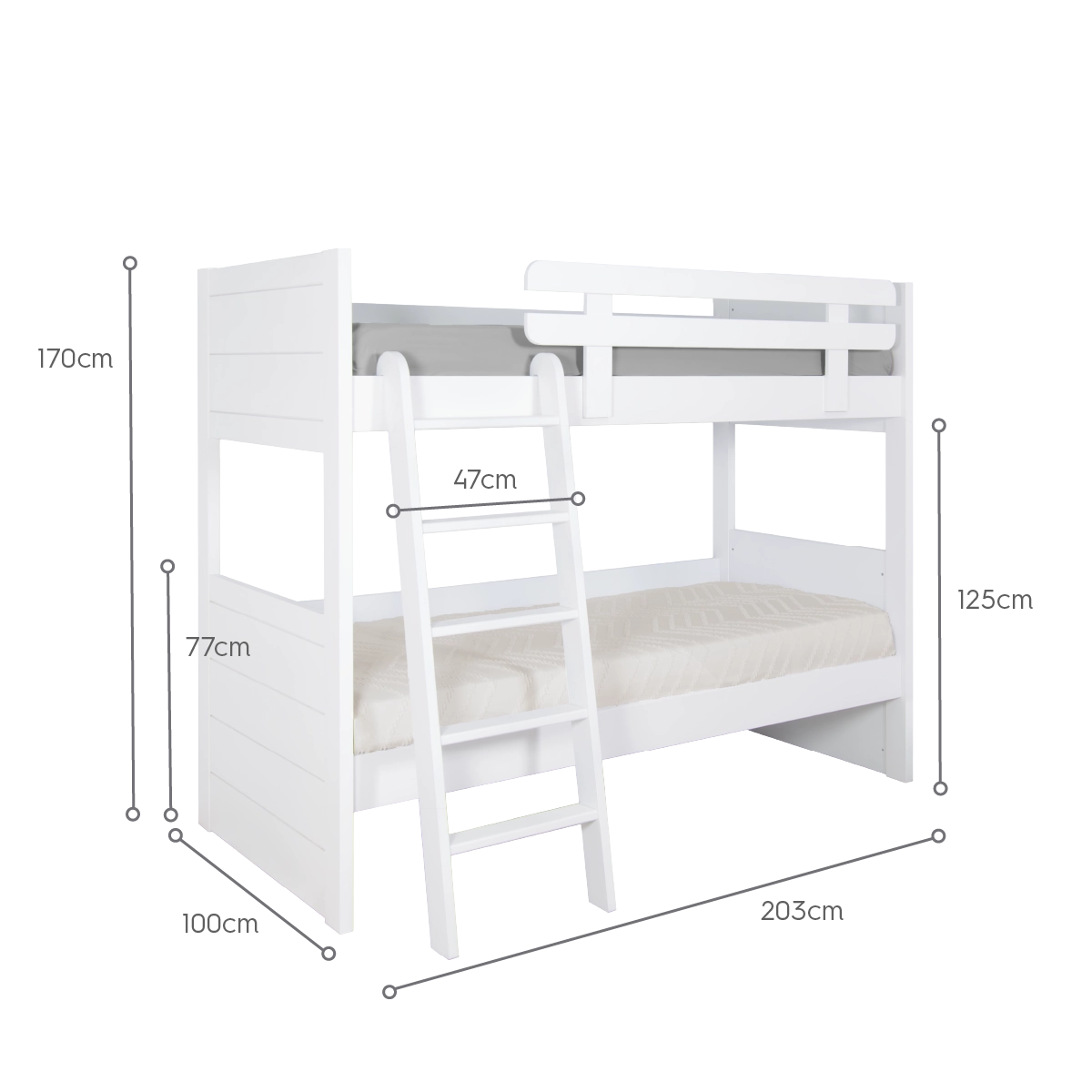 Descubra o nosso Beliche LINEAR, uma solução ideal para os quartos de criança com espaço limitado. Este beliche, lacado num branco elegante, alia funcionalidade e estilo, garantindo uma utilização máxima do espaço.