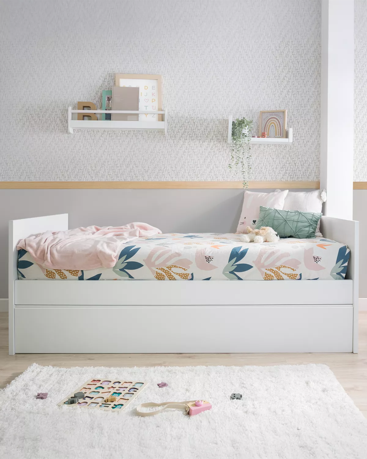 Estilo e conforto para crescer: A nossa cama com gaveta oferece uma estrutura leve, mas resistente, concebida para acompanhar os seus filhos desde a infância até à idade adulta.