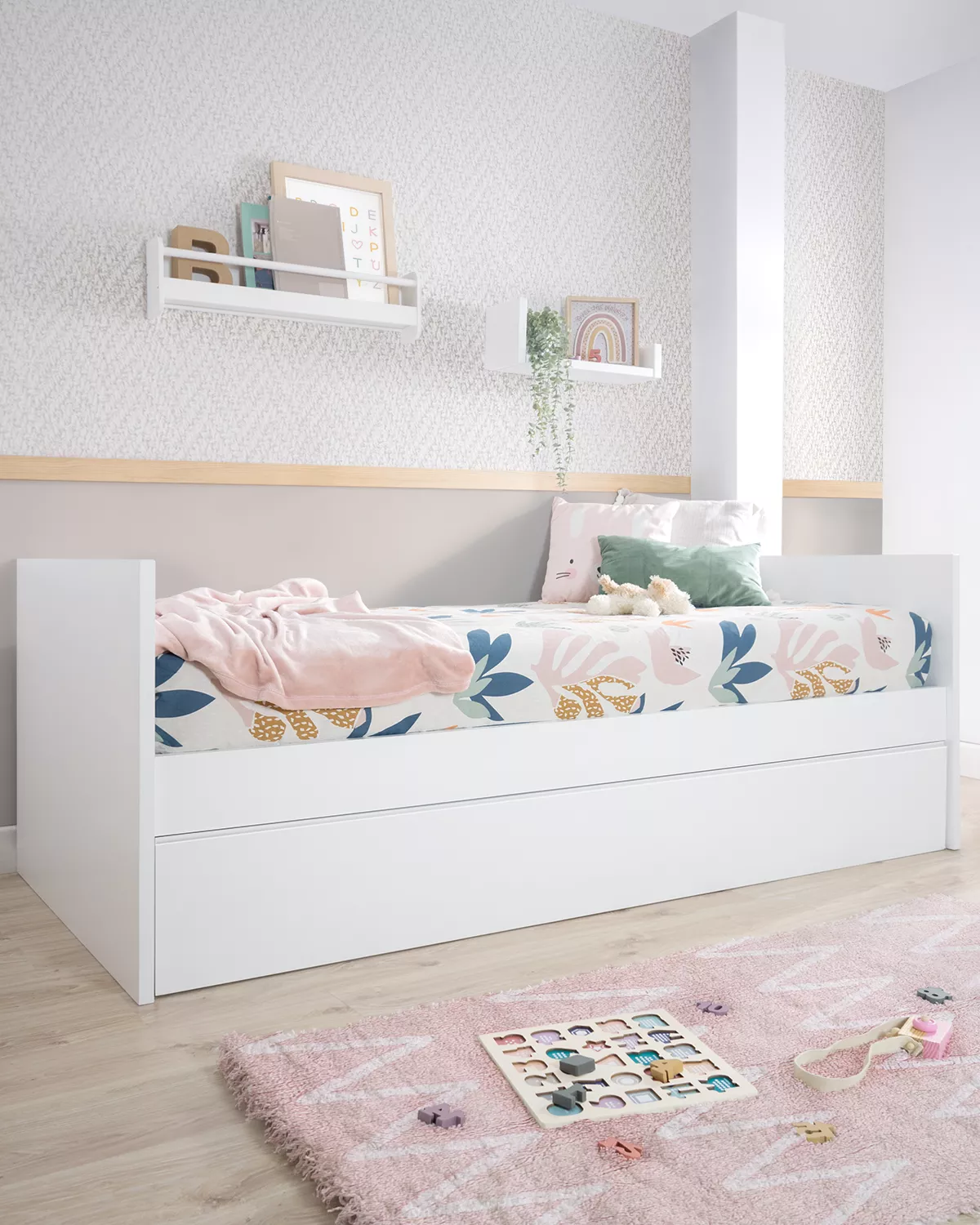 A nossa cama juvenil Blanca é uma cama de rodízio perfeita para quartos com espaço limitado. lacado branco