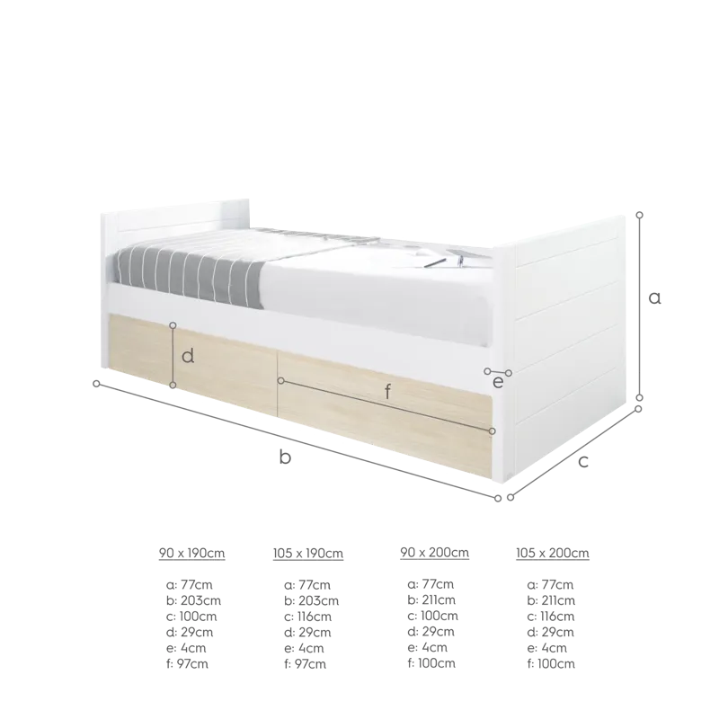 - Cama jovem com gavetas em madeira branca e natural - Lineal