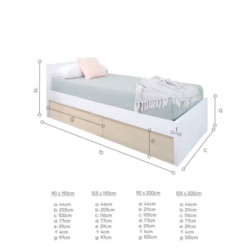 Descubra a combinação perfeita entre design e funcionalidade com a nossa Cama com Gavetas em branco e madeira natural com estrado baixo e liso, pensada para espaços juvenis e infantis com um toque nórdico. Esta elegante peça de mobiliário não é apenas um deleite visual, mas também uma solução prática para quartos mais pequenos.