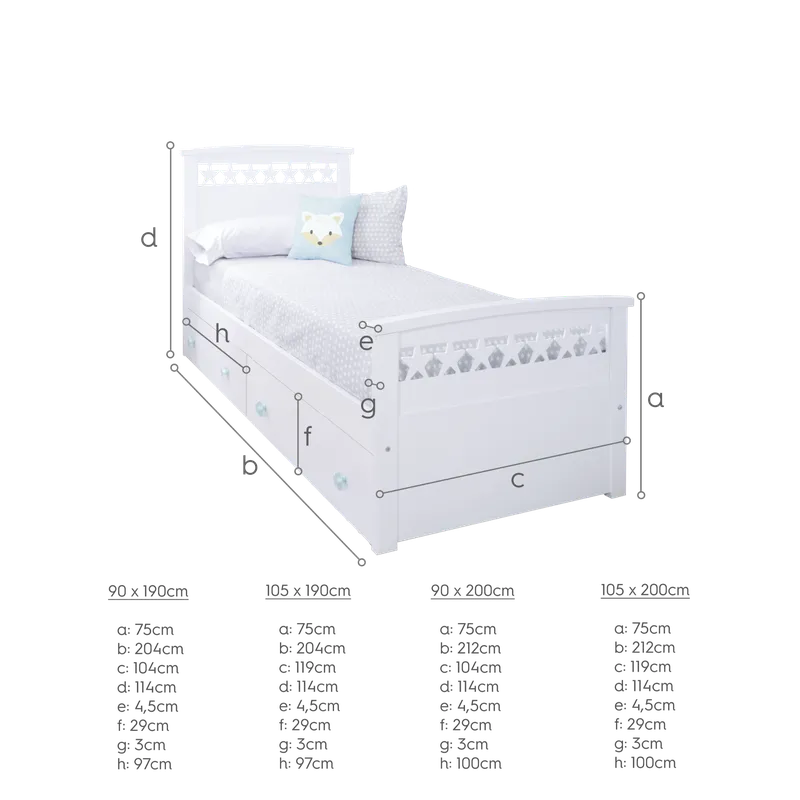 A Cama Estrelas com gavetas é uma cama para crianças perfeita para dormitórios com espaço reduzido. Envernizada em branco com uma qualidade excepcional, cheia de curvas e linhas que criam um ambiente perfeito para um dormitorio infanto-juvenil. Graças a sua estrutura leve mas ao mesmo tempo robusta, os teus filhos poderão aproveitá-la por muito tempo. Ademais com dois gavetões inferiores de grande capacidade, ideais para guardar todo tipo de coisa, jogos, roupas etc. Com um acabado em branco que permite combinar facilmente com qualquer espaço e estilo decorativo. São móveis duradeiros, se destacam por um desenho cheio de curvas e elegane que cria o dormitorio ideal.