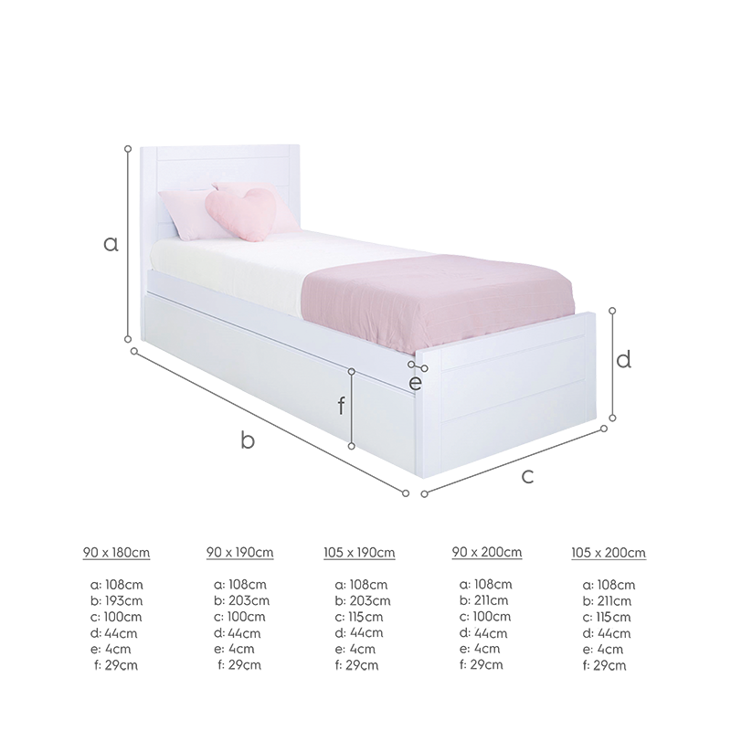 Medidas da cama: 193 cm x 100 cm x 108 cm