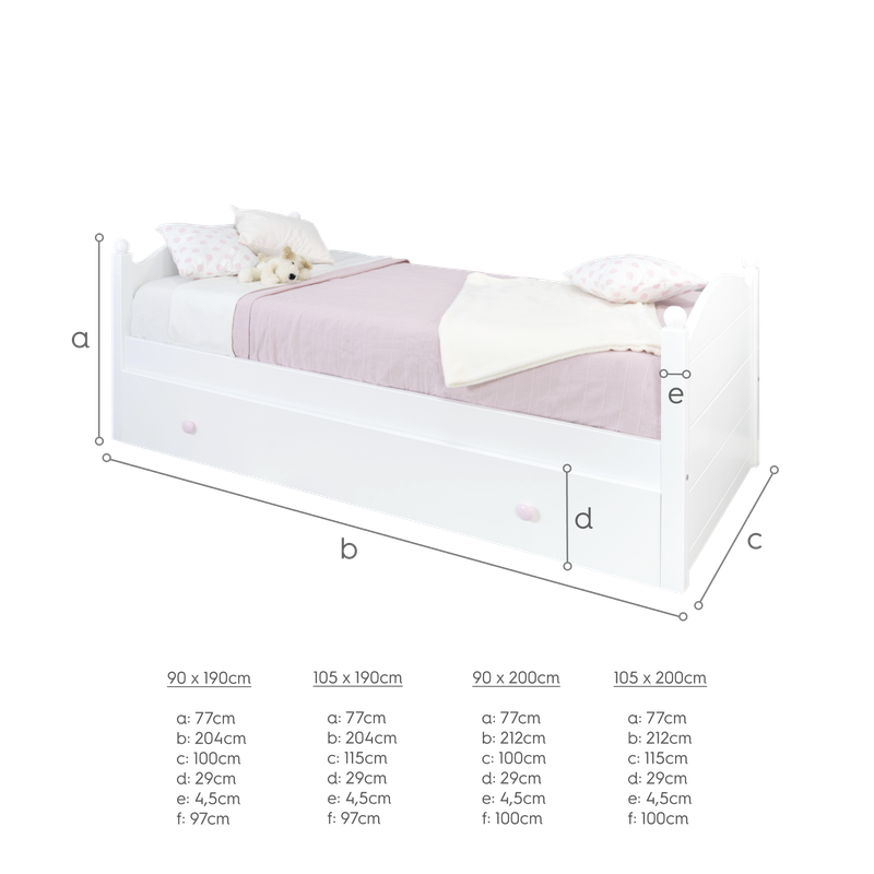 Pour tous nos lits gigogne, le sommier inférieur avec pieds dépliables est toujours INCLUS dans le prix.
