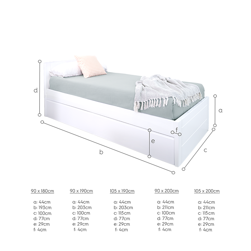 *Se a sua cama nido for de 90 × 180 cm, ambos os colchões devem ser de 90 × 180 cm.*