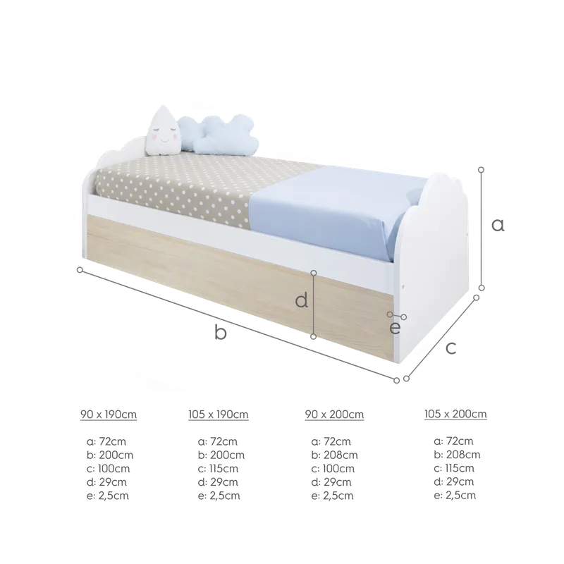- Cama dupla nuvem branca e madeira natural