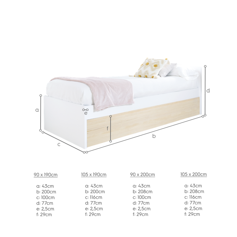 Même si vous avez selectionné une dimensions différente pour le couchage principal supérieur, le couchage inférieur lui sera toujours de 90x190.