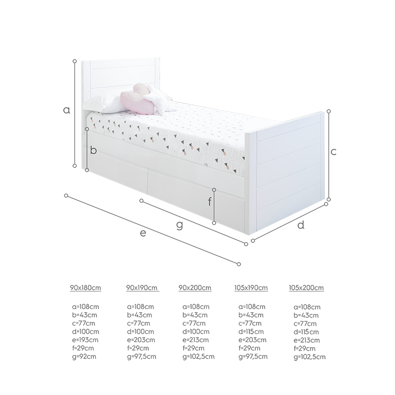 A Cama Lineal com gavetões é uma cama para crianças perfeita para dormitórios com espaço reduzido. Envernizada em branco com uma qualidade excepcional, cheia de curvas e linhas que criam um ambiente perfeito para um dormitorio infanto-juvenil. Graças a sua estrutura leve mas ao mesmo tempo robusta, os teus filhos poderão aproveitá-la por muito tempo. Ademais com dois gavetões inferiores de grande capacidade, ideais para guardar todo tipo de coisa, jogos, roupas etc. Com um acabado em branco que permite combinar facilmente com qualquer espaço e estilo decorativo. São móveis duradeiros, se destacam por um desenho cheio de curvas e elegane que cria o dormitorio ideal.