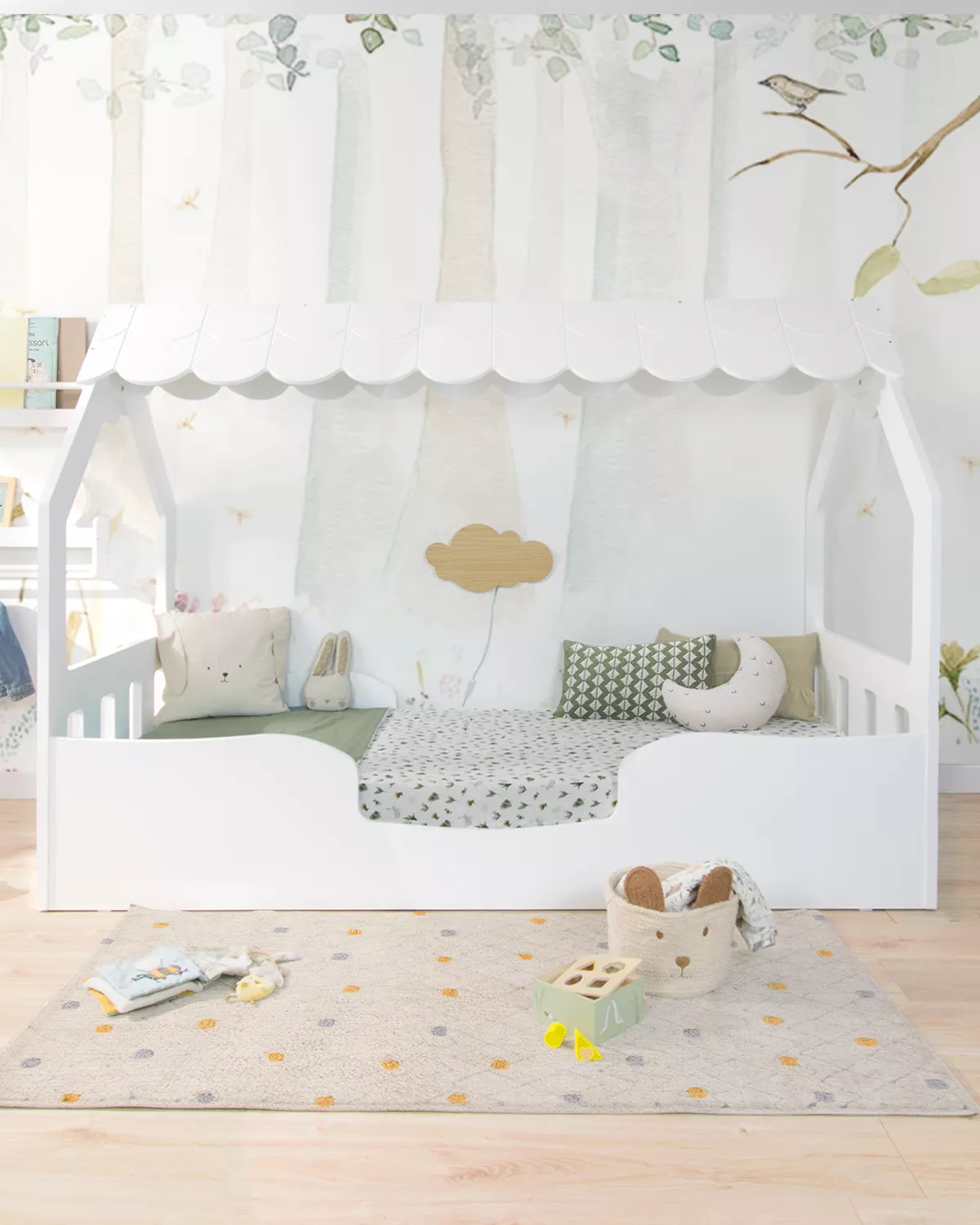 A Cama infantil Montessori Casinha apresenta um desenho diferente e único. Caracteriza-se por ser uma cama de baixa altura, de maneira que as crianças da casa possam subir e descer dela de maneira muito fácil e cómoda. Resulta perfeita para fazer a transição do berço a cama infantil de uma maneira progressiva, ajudando-os a trabalhar a sua coordenação motora e aprendizagem.