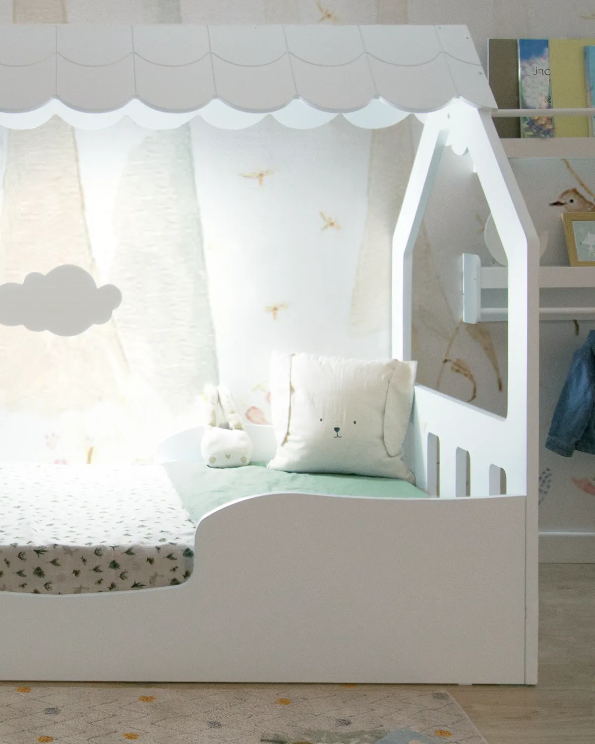 A Cama infantil Montessori Casinha apresenta um desenho diferente e único. Caracteriza-se por ser uma cama de baixa altura, de maneira que as crianças da casa possam subir e descer dela de maneira muito fácil e cómoda. Resulta perfeita para fazer a transição do berço a cama infantil de uma maneira progressiva, ajudando-os a trabalhar a sua coordenação motora e aprendizagem.