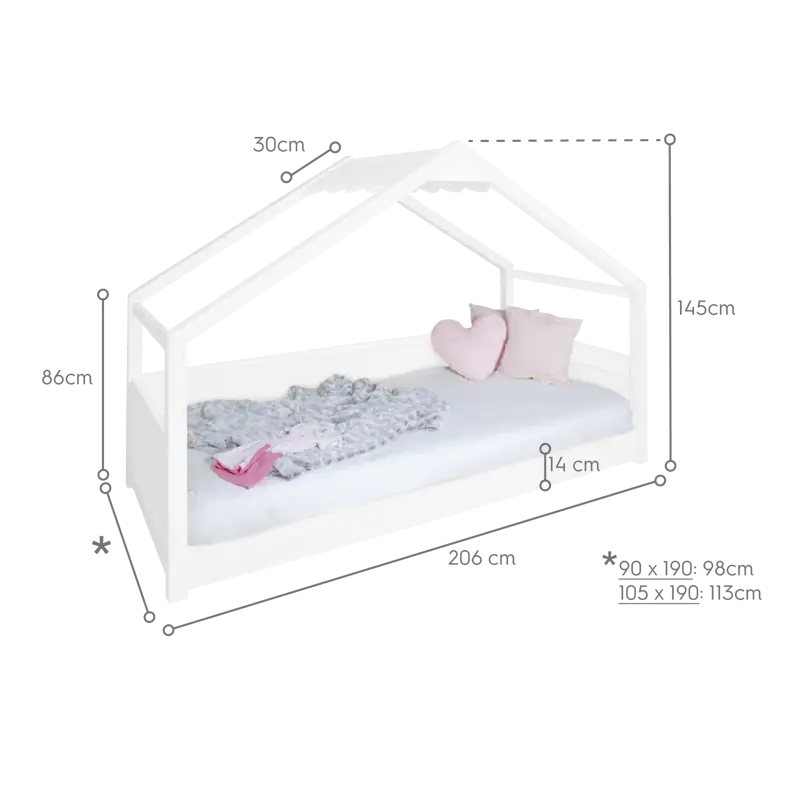 A Cama infantil Casinha Branca con Telhado é uma cama para crianças perfeita para aqueles que buscam qualidade e durabilidade. Envernizada em branco com uma qualidade excepcional. Com acabados retos, e linhas que criam um ambiente perfeito para um dormitorio infanto-juvenil. Graças a sua estrutura leve mas ao mesmo tempo robusta, os teus filhos poderão aproveitá-la por muito tempo. Possui uma forma de casinha que faz dessa cama algo muito original. Ademais com um acabado em branco que permite combinar facilmente com qualquer espaço e estilo decorativo. São móveis duradeiros que se destacam por um desenho cheio de curvas elegantes que criam o dormitorio ideal.