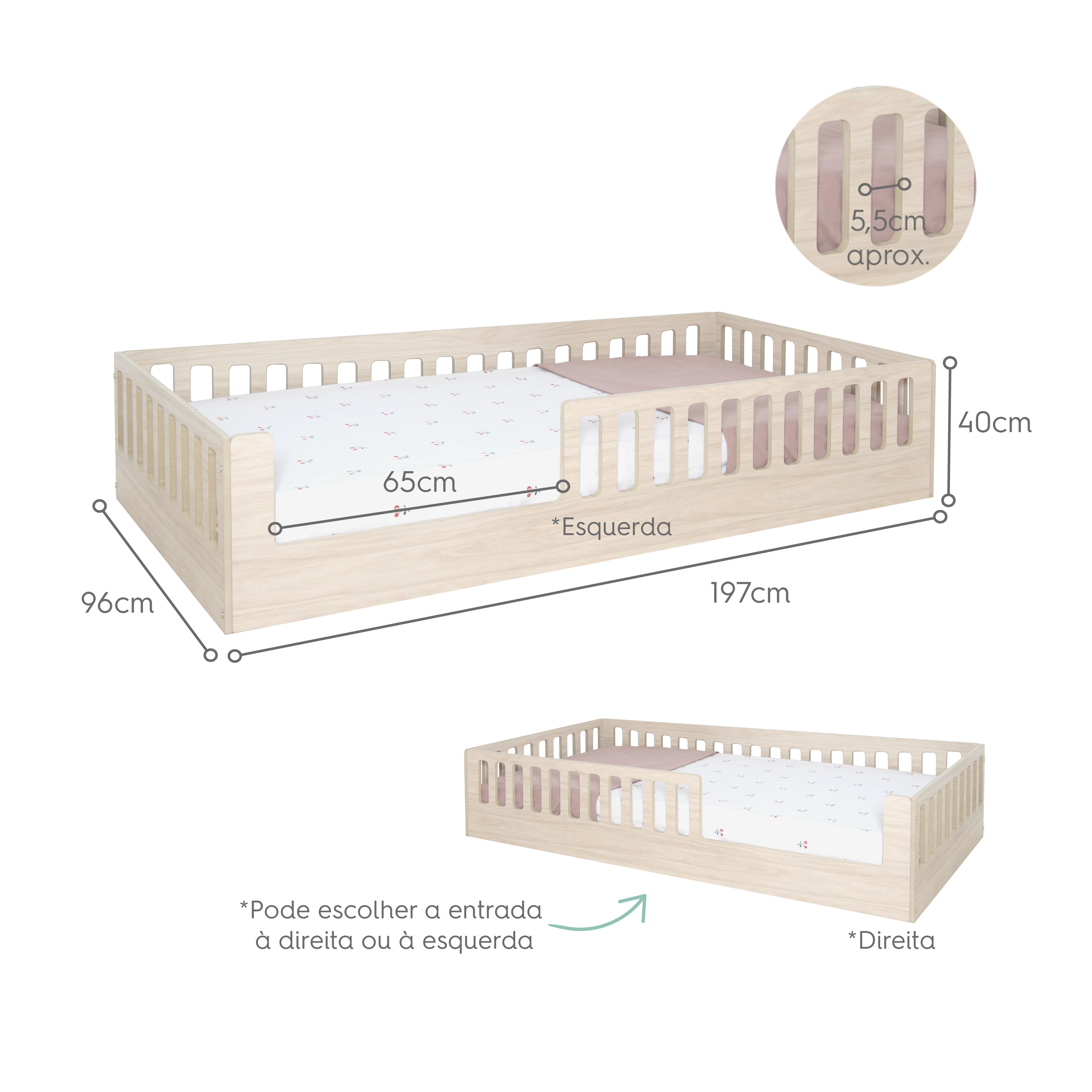 - Cama Montessori Creta com grade de segurança