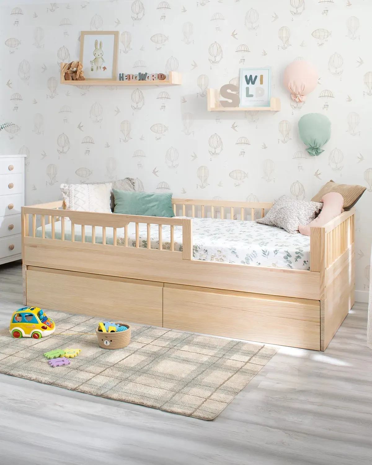Acompanhe os seus filhos em todas as etapas do seu crescimento com o nosso Kit Evolution, concebido para transformar a sua cama montessori numa solução mais funcional. Com este kit, pode acrescentar uma cama inferior ou gavetas de arrumação práticas, adaptando-se às necessidades do seu filho sem ter de mudar de cama.