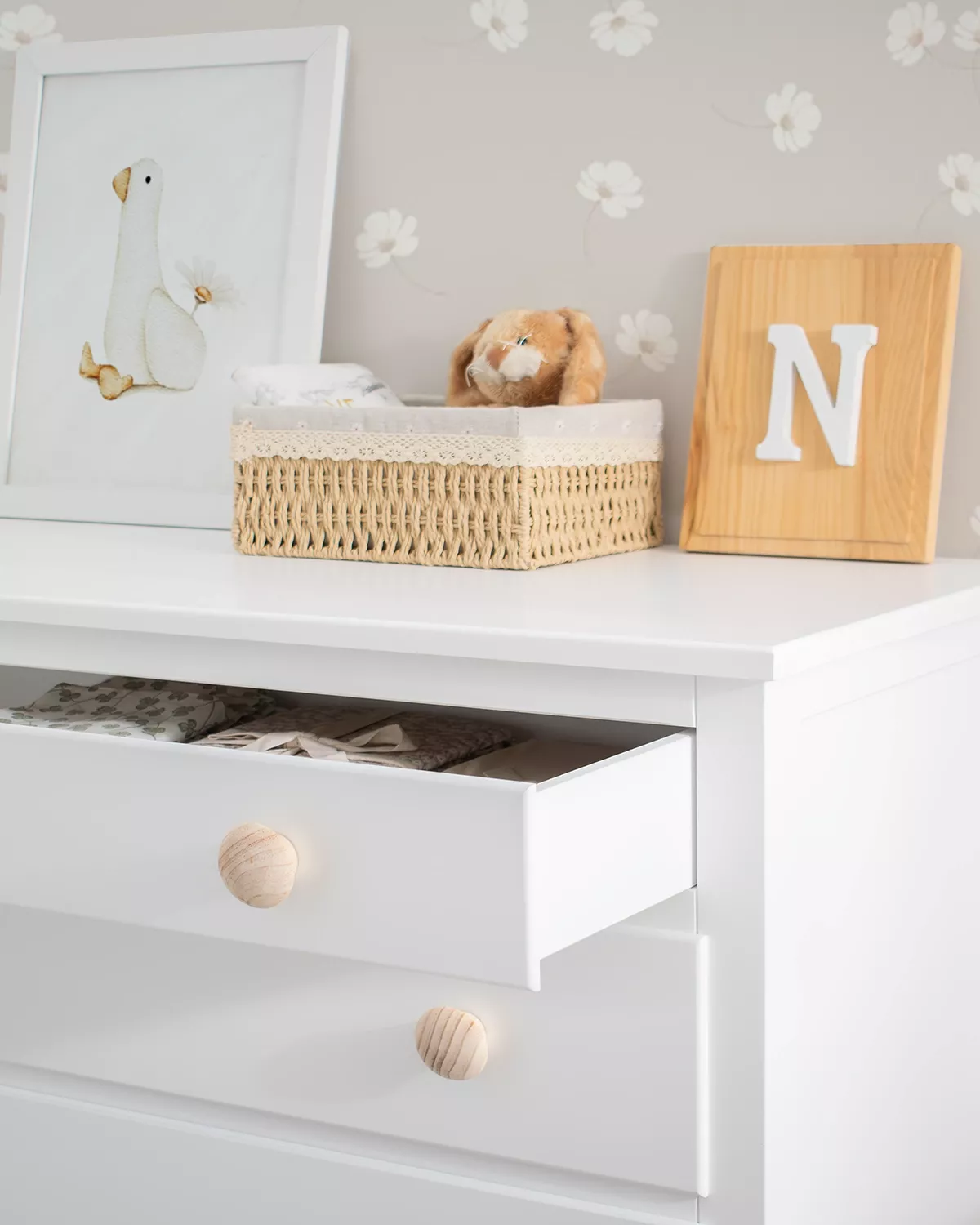 Cómoda infantil com portas e cortinas é um móvel original que a pesar das suas linhas simples tem uma aparência elegante, romántica e divertida, o que o converte em em uma peça imprescindível. Possui um grande espaço de armazenamento, onde se poderá colocar tudo o que se necessite.