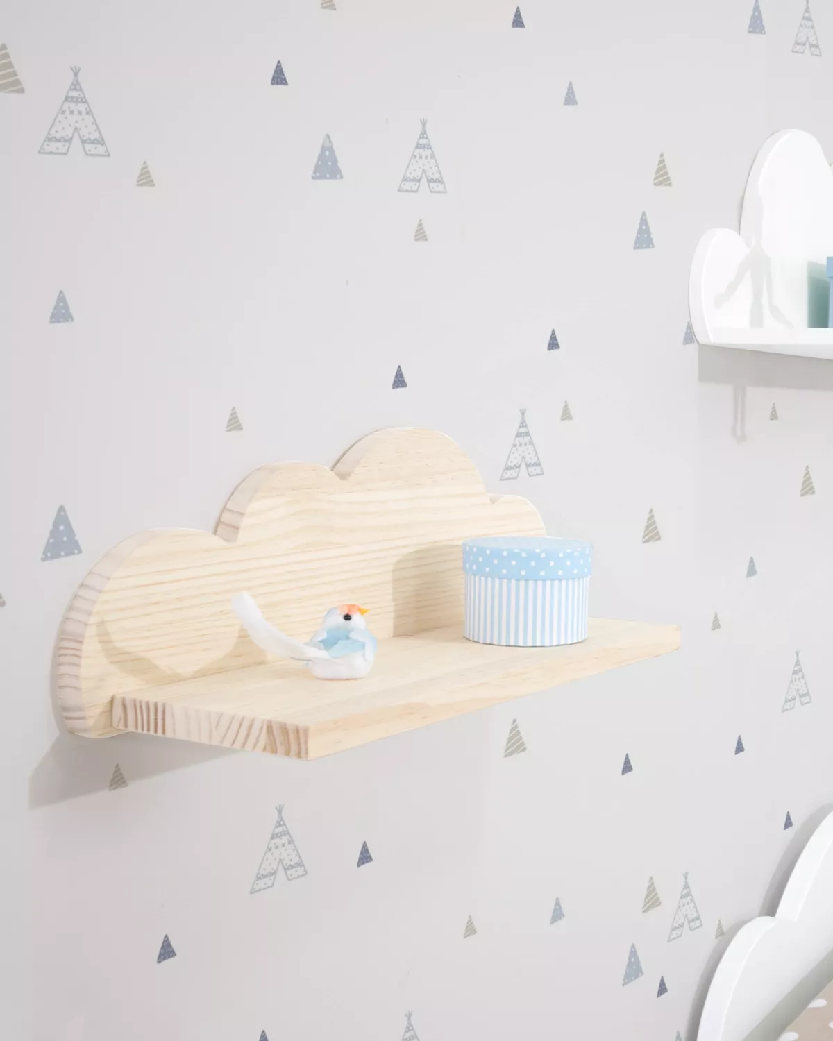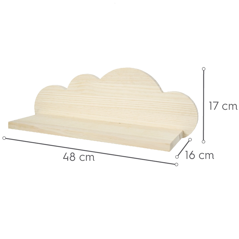 A estante infantil de madeira natural é ideal para um quarto infantil original ao estilo Nórdico. Esta estante não é apenas um objeto decorativo mas também é muito funcional e prática já que nela se podem colocar livros, revistas, cadernos etc. Suas medidas são 48 cm de largura x 17 cm de altura x 16 cm de profundidade (1,7 cm de espessura). Com este dsesenho diferente e original seguramente trará muito mais estilo para o quarto das crianças.