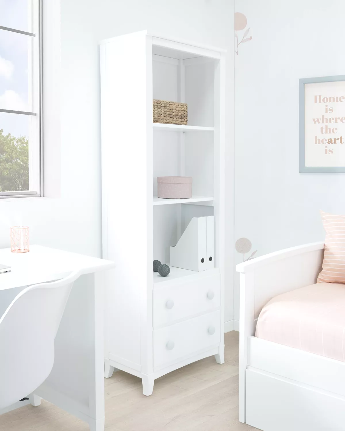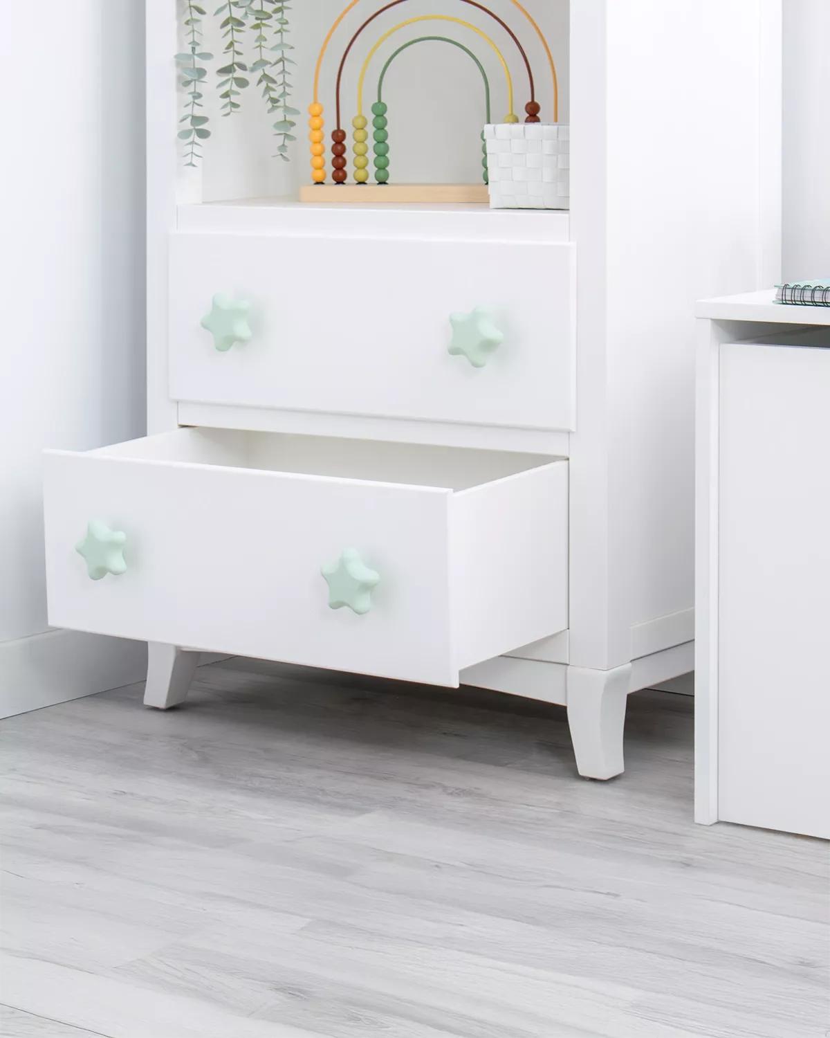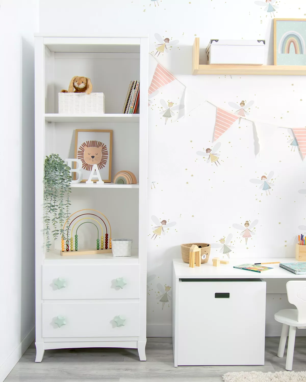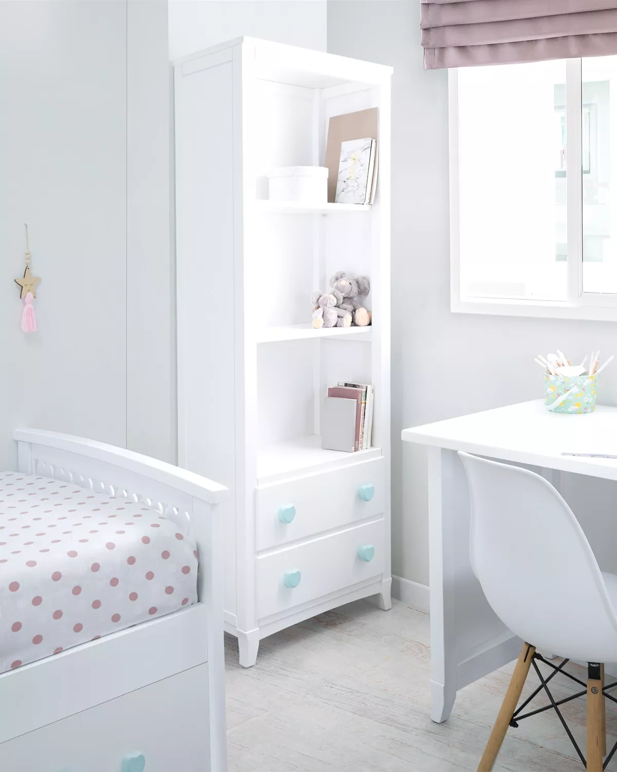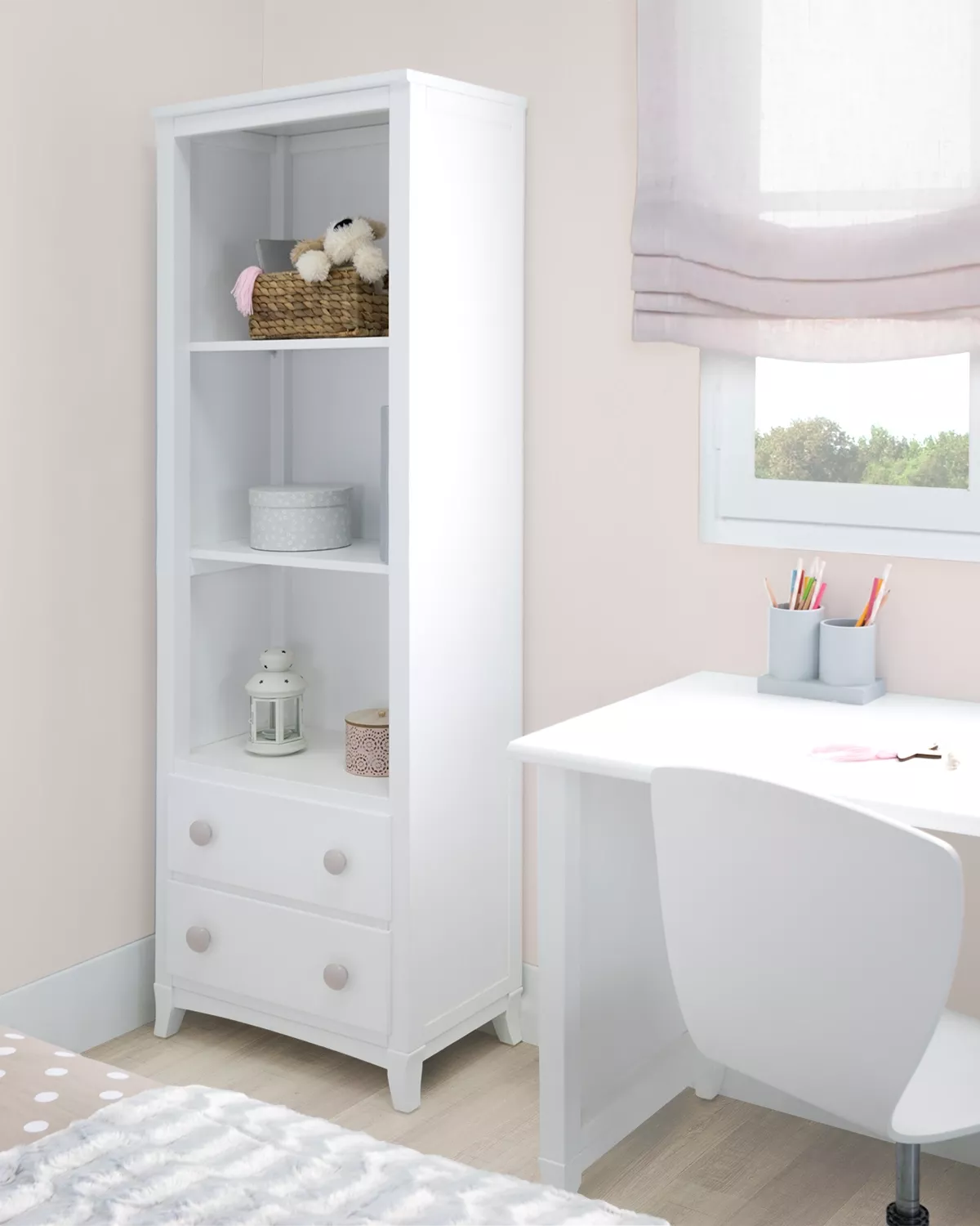 Estante com gavetas: Um objeto moderno e elegante, excelente opção para completar a decoração do quarto das crianças de maneira discreta e delicada, estante ideal para guardar livros, revistas e os objetos mais necessários para ser ter ao alcançe das mãos.