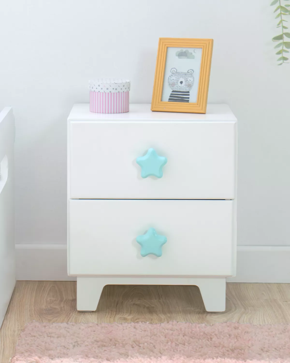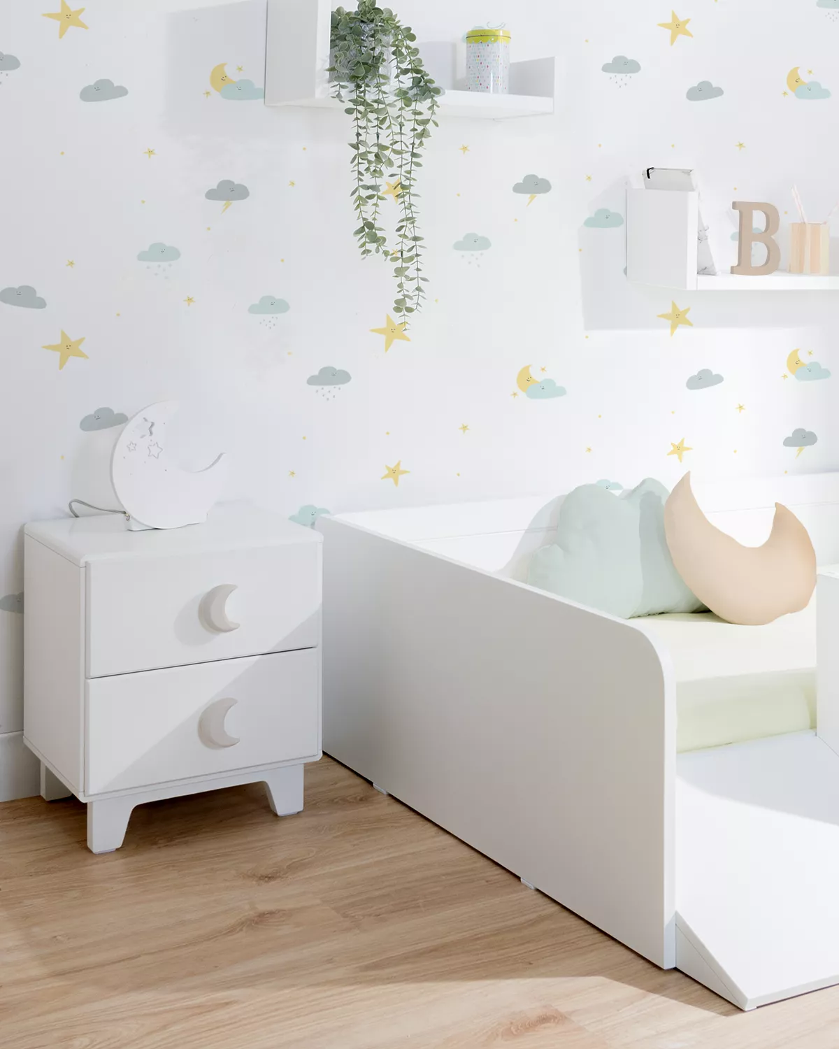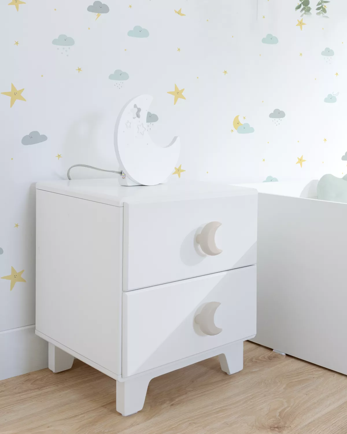 Esta divertida e original Mesa para cabeceiro Piccolo 2 gavetas com pés é perfeita graças ao seu desenho, o que a converte no complemento ideal para qualquer dormitório infantil. Seu original desenho nórdico faz com que seja uma mesa de cabeceiro que encanta as crianças. Elas se sentirão parte de um conto de fadas, já que as suas linhas e o seu desenho transformam o quarto em um lugar único.