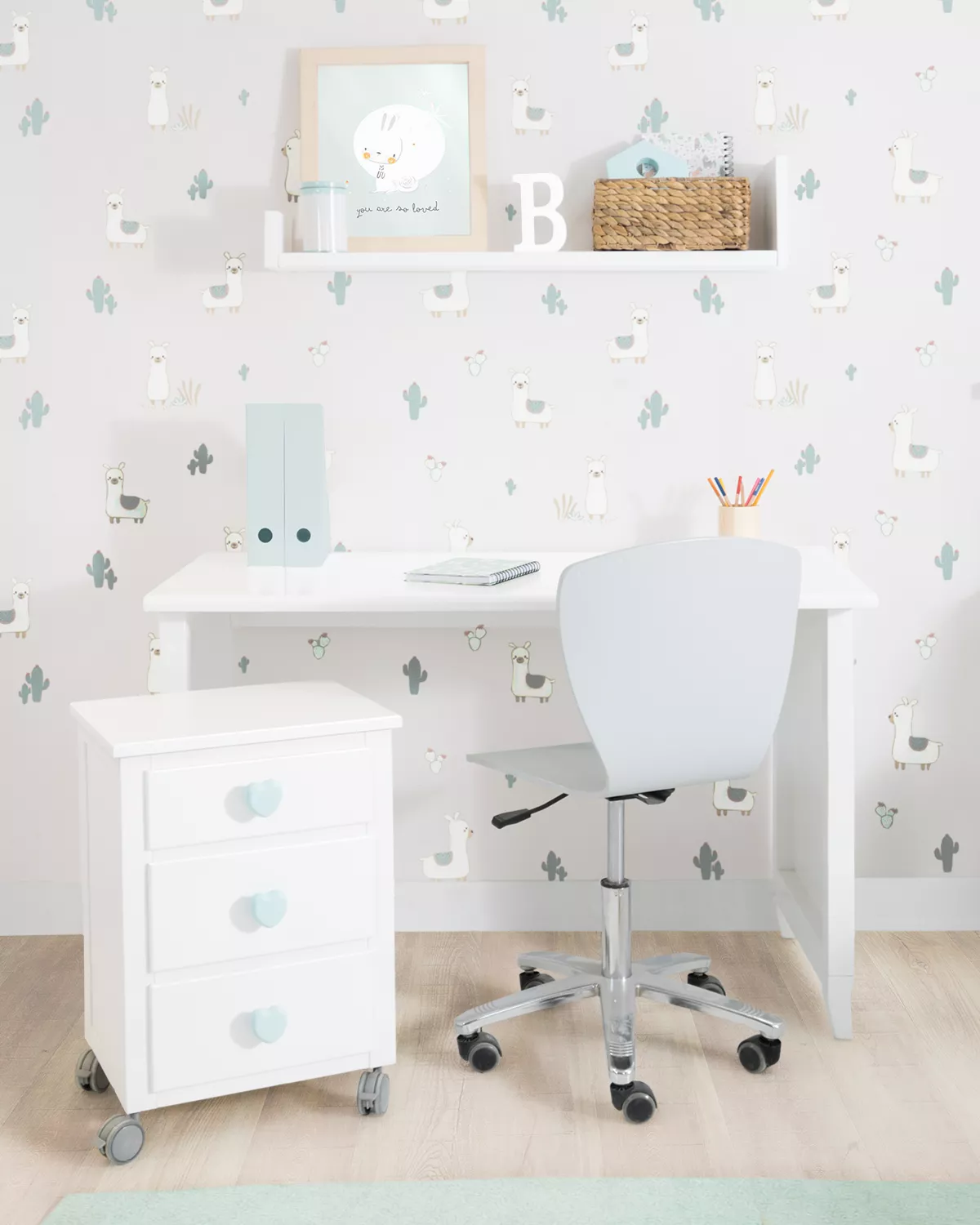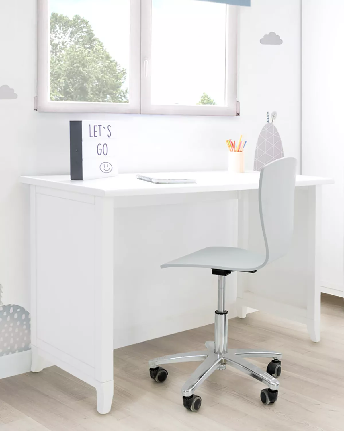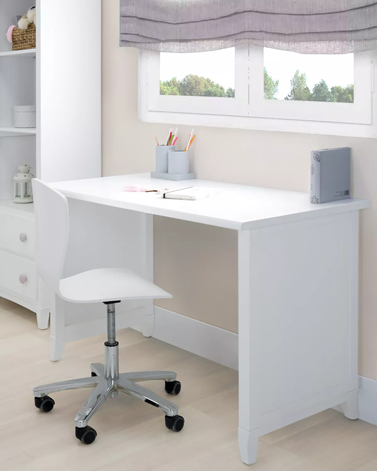 Secretária lacada a branco: Graças ao seu acabamento em laca branca, esta secretária não só tem um aspeto moderno e limpo, como também ajuda as crianças a manterem-se concentradas na sua área de estudo.