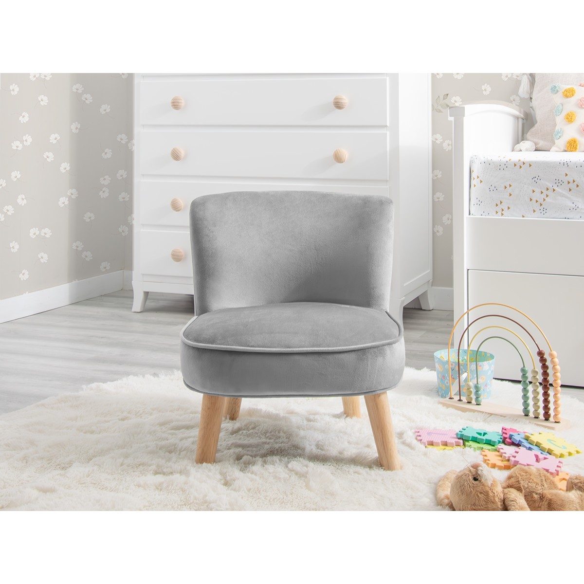 A poltrona dispõe de um acolchoado suave e pernas de madeira, com destaque para o seu estofamento em tecido de veludo macio.
