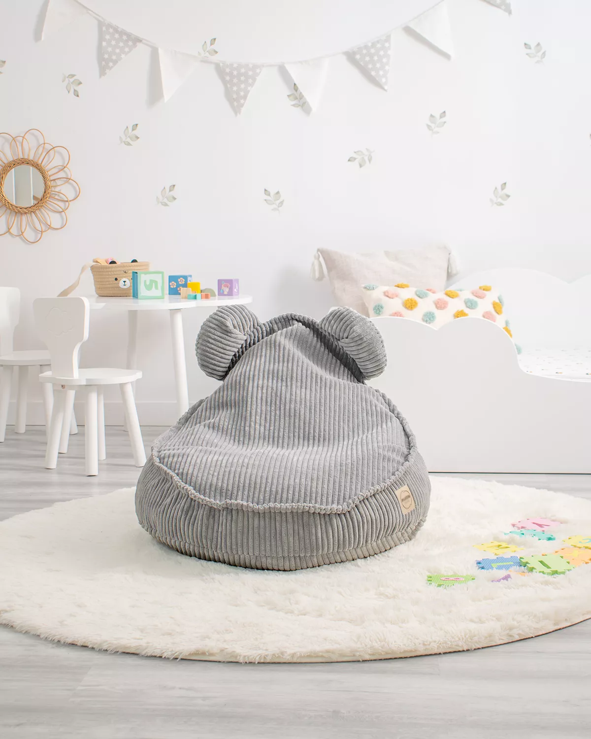 O nosso puff infantil em forma de ursinho está disponível em várias cores. É macio, fofinho e, além disso, tem capa removível para que o possas lavar facilmente.