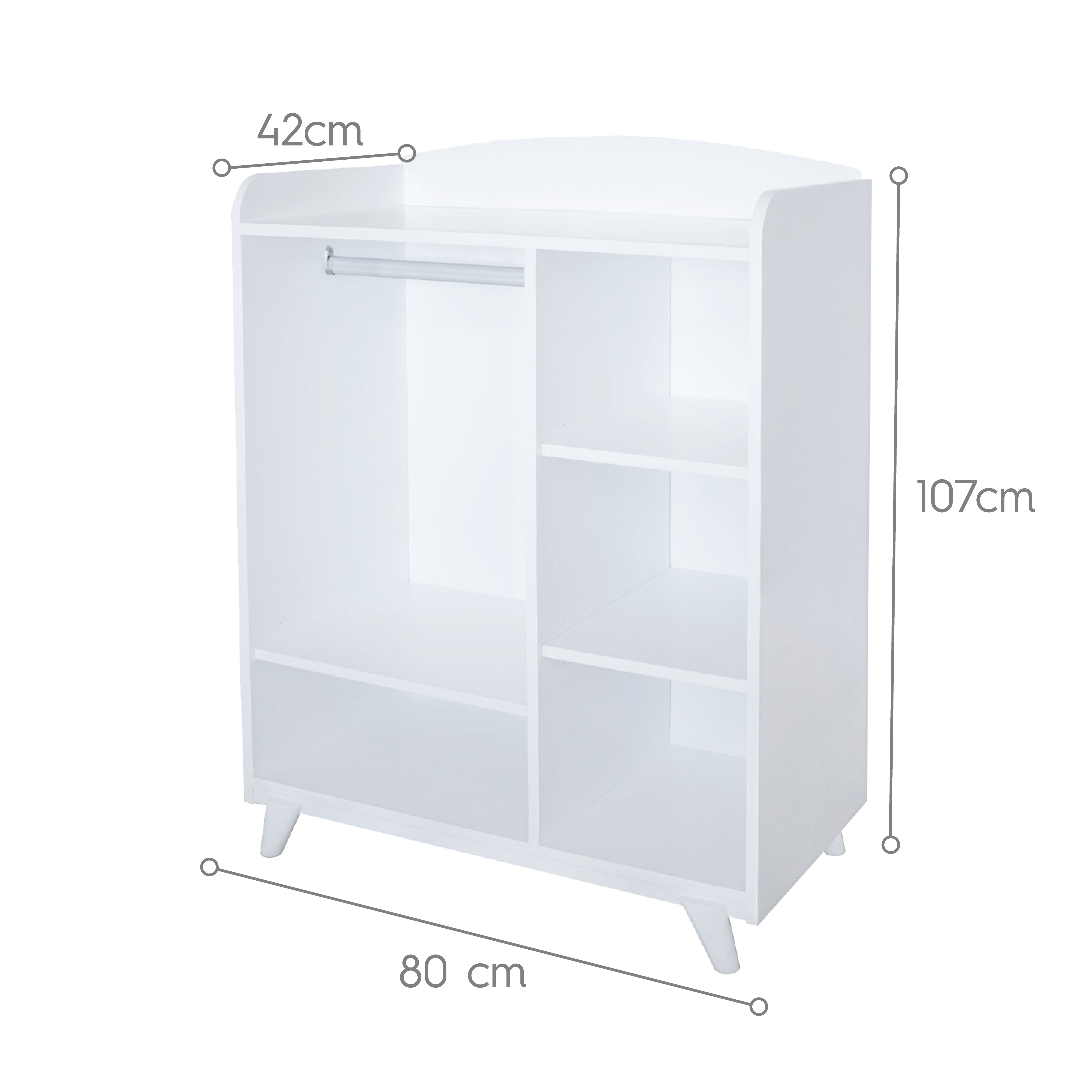 Lindo roupeiro. Boa qualidade, ideal para crianças pequenas até certa idade. Dá a eles autonomia e independência quando vão elegir a roupa. Envio rápido e em perfeito estado. Sem dúvida repetirei com Bainba. Perguntas frequentes + -