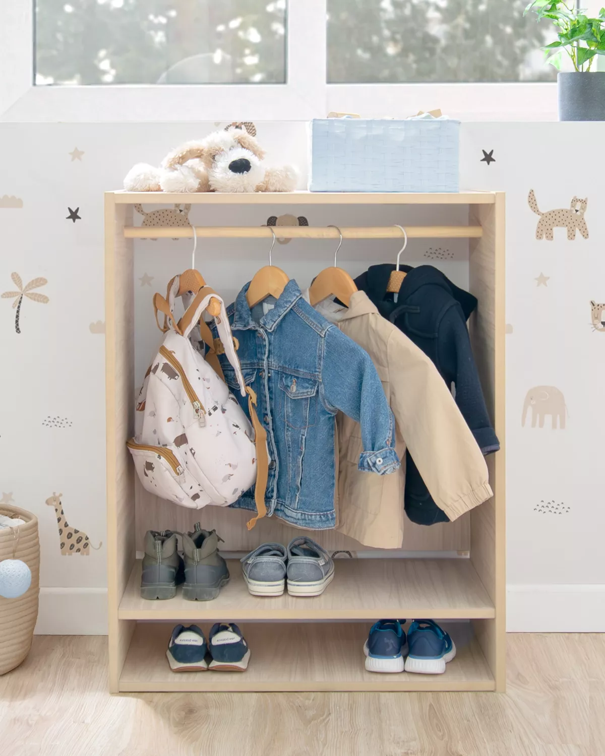 Design Montessori: Um roupeiro baixo e acessível que ajuda as crianças a desenvolverem a sua autonomia no seu ambiente quotidiano.