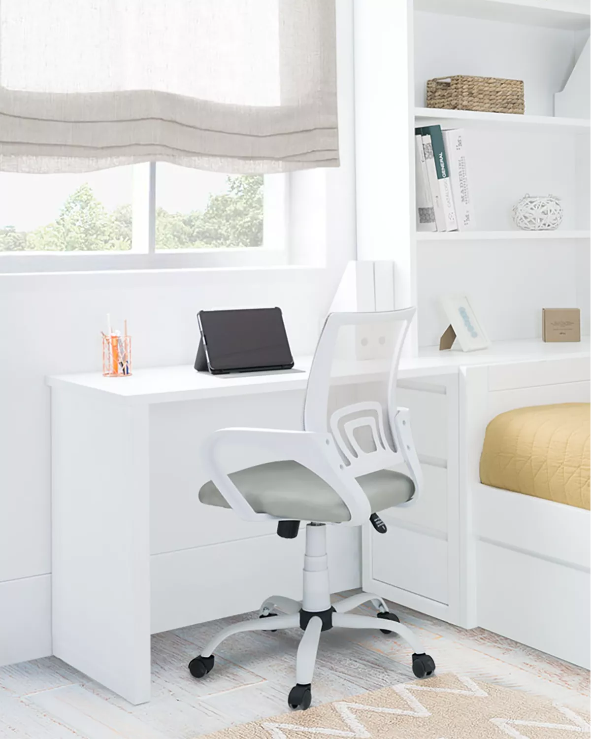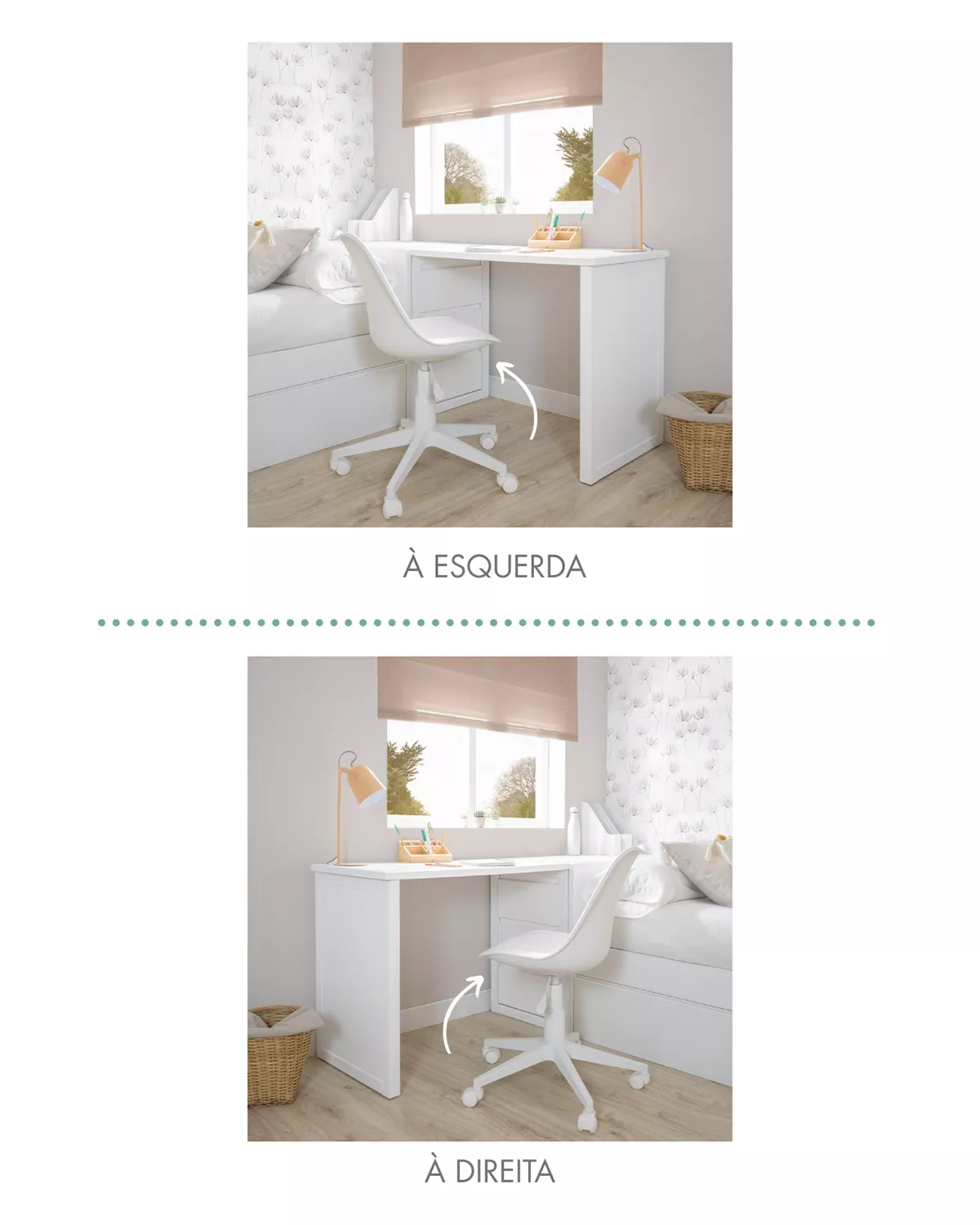 Secretária lacada a branco: Graças ao seu acabamento em laca branca, esta secretária não só tem um aspeto moderno e limpo, como também ajuda as crianças a manterem-se concentradas na sua área de estudo.