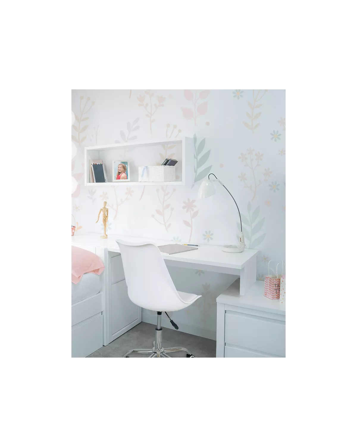 Com um desenho em linhas retas e simple perfeitas para criar um ambiente juvenil. Nossa secretária é pensada para que os miúdos da casa tenham a sua zona lúdica e de estudo, muito necessária para que possam canalizar a suas energias positivas, criando hábitos saudáveis. Muito bem equipada com um gaveteiro onde podem guardar todo o necessário. A sua estrutura é fabricada em madeira MDF envernizada em branco. Essa secretária dará um toque especial ao integrar-se perfeitamente em todo o ambiente do quarto, transformando-o em um espaço único e diferente.