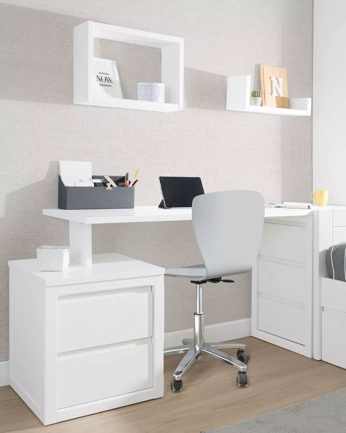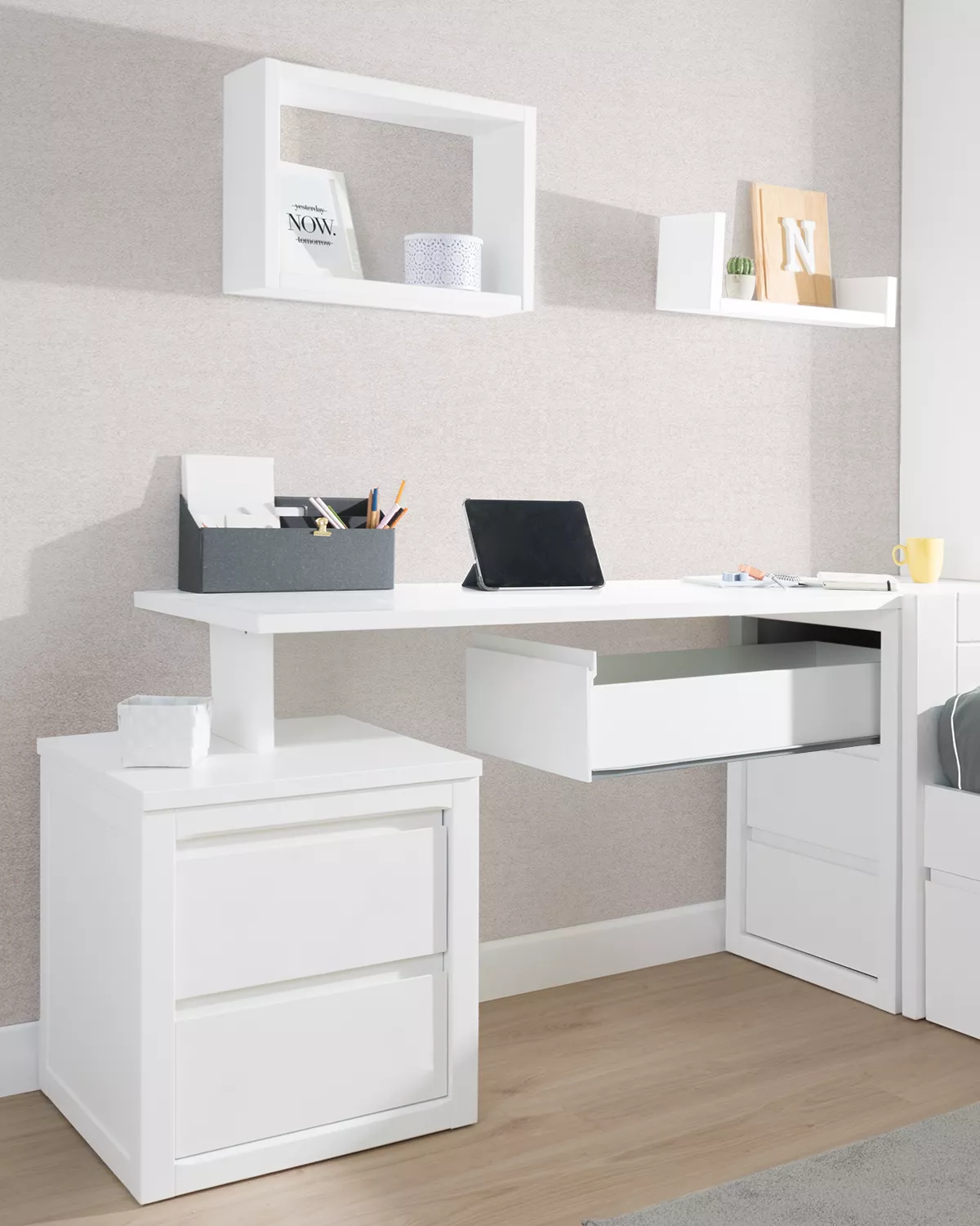 Secretária lacada a branco: Graças ao seu acabamento em laca branca, esta secretária não só tem um aspeto moderno e limpo, como também ajuda as crianças a manterem-se concentradas na sua área de estudo.
