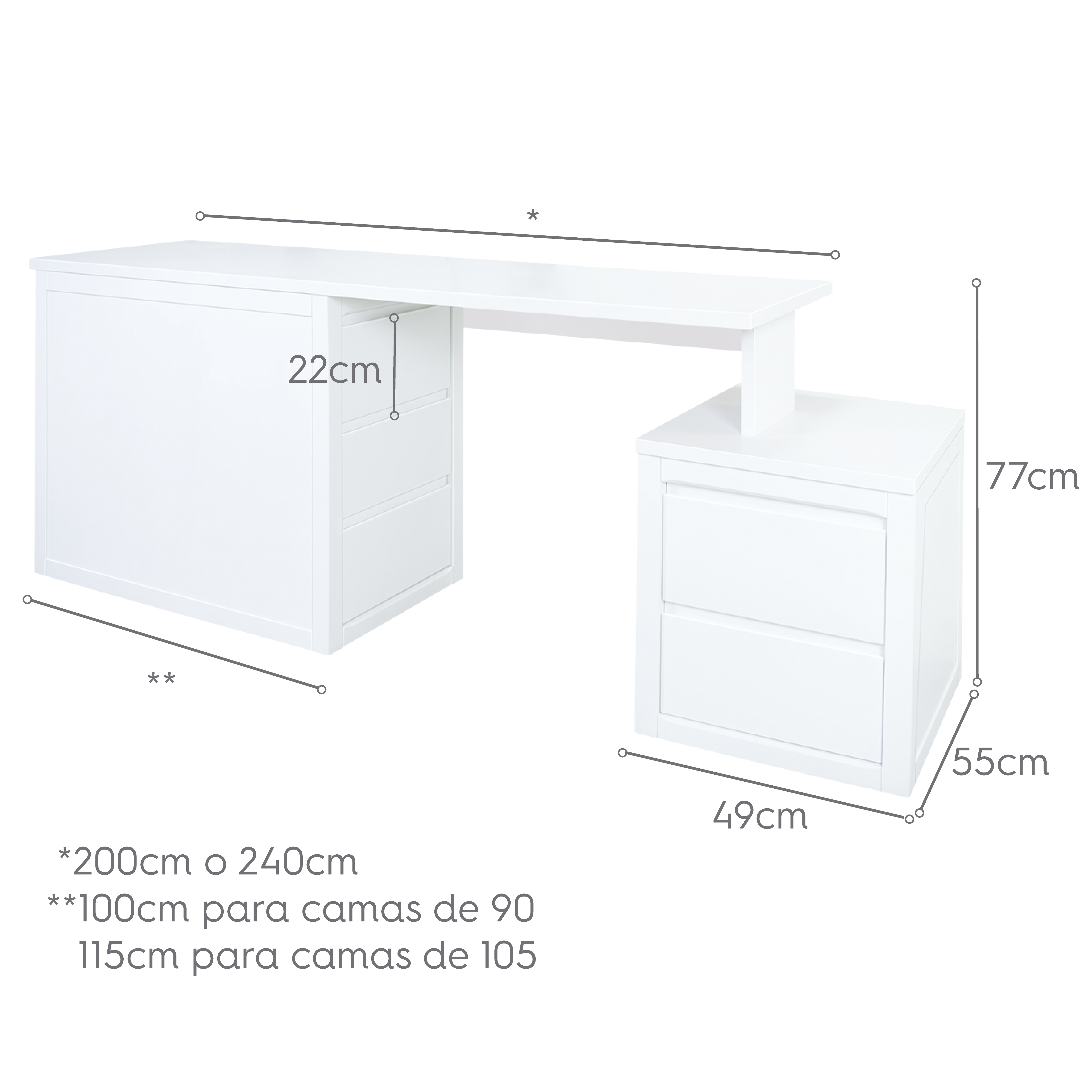 Durabilidade garantida: Fabricada em MDF de alta qualidade e lacada a branco, esta secretária é resistente e duradoura, garantindo longevidade e versatilidade em qualquer espaço.