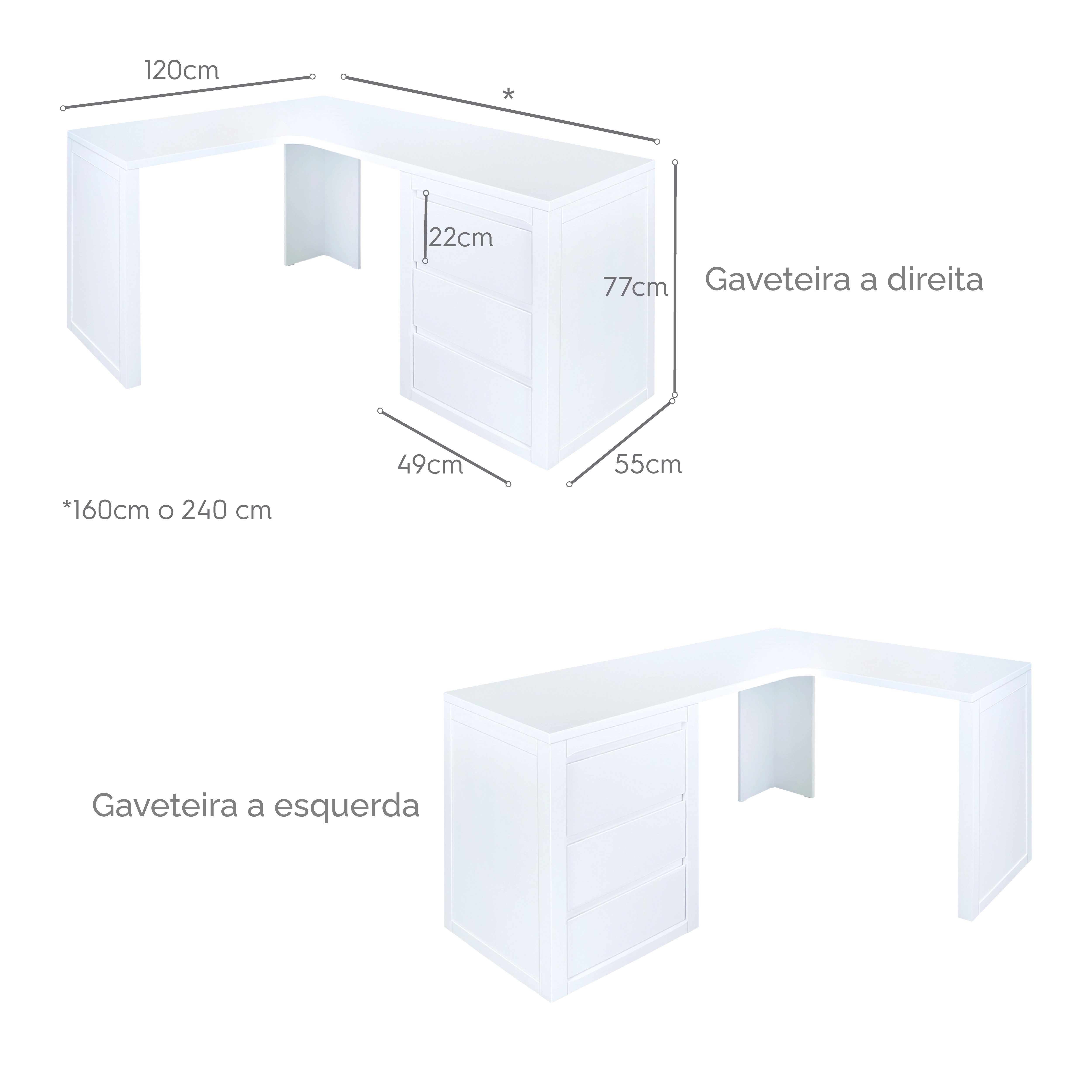 Durabilidade garantida: Fabricada em MDF de alta qualidade e lacada a branco, esta secretária é resistente e duradoura, garantindo longevidade e versatilidade em qualquer espaço.