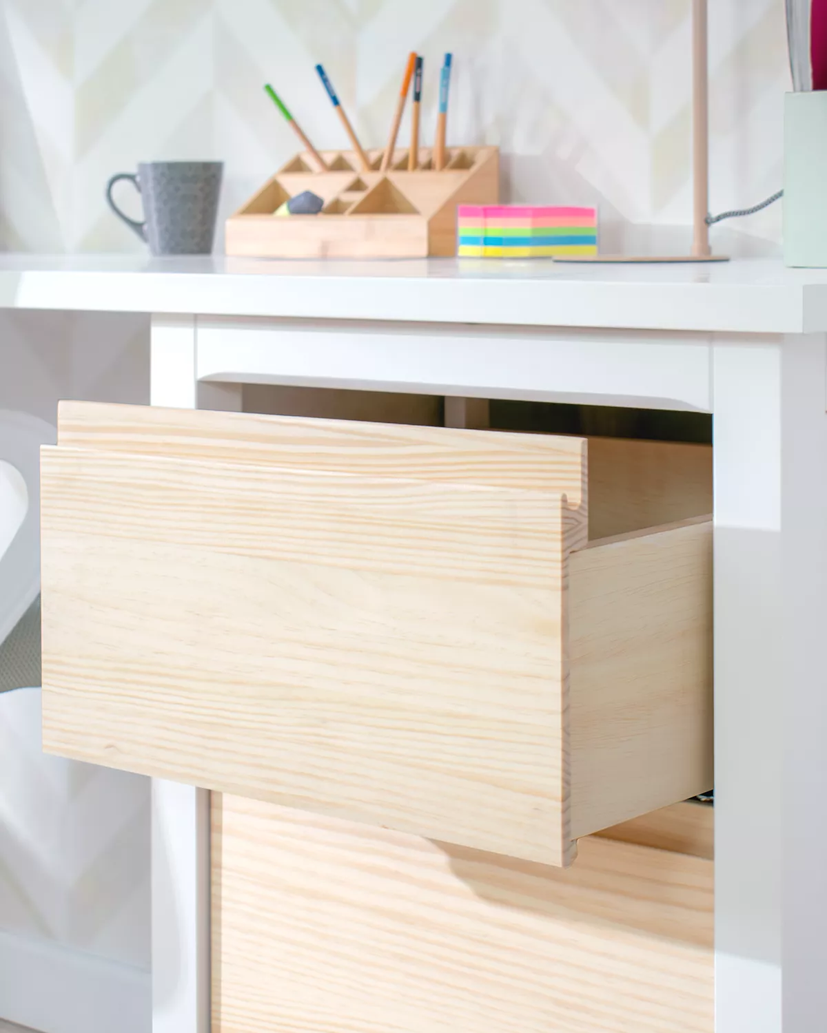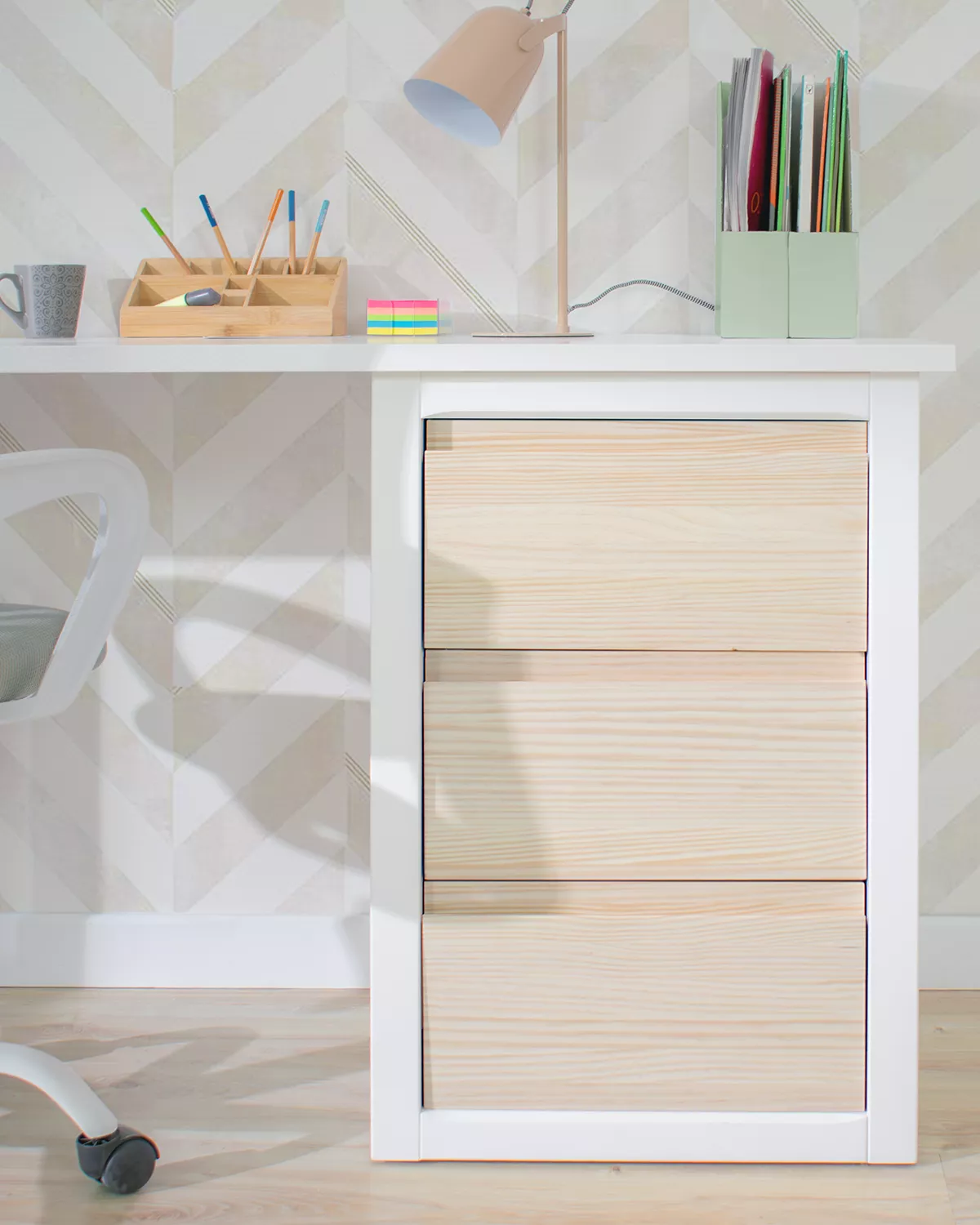 A nossa secretária juvenil Lineal com gavetas é a solução perfeita para criar um espaço inspirador no quarto do seu filho. Esta elegante peça de mobiliário foi concebida para estimular a concentração e a criatividade nos mais pequenos.