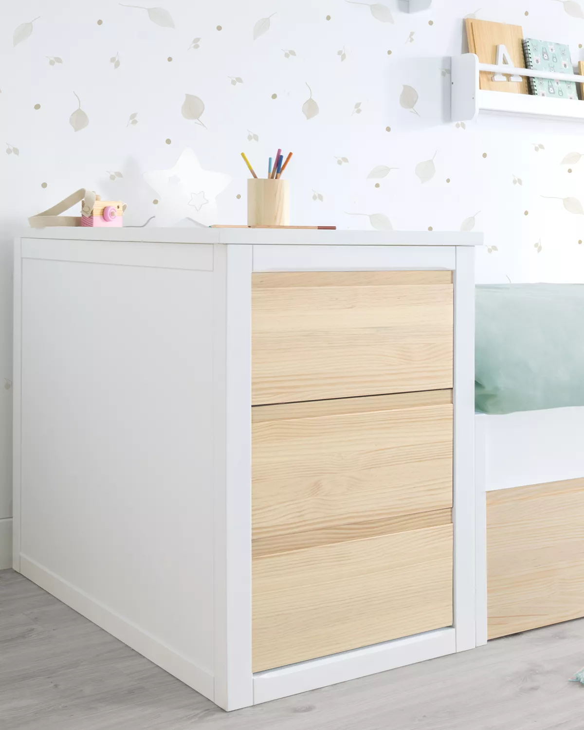 A nosso gaveteiro é ideal para aproveitar ao máximo o seu espaço. Além disso, é fácil de integrar com as nossas áreas de estudo e camas para criar o quarto completo perfeito.