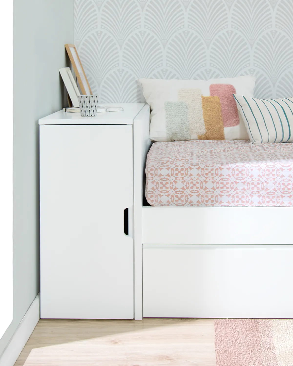 A nossa arca por medida é a solução perfeita para aproveitar aqueles cantos difíceis e otimizar o espaço de arrumação em qualquer divisão. Concebida especialmente para espaços onde uma cómoda convencional não se enquadra, esta arca é ideal para criar quartos com camas em L, contornar um pilar ou separar camas de forma prática e funcional.