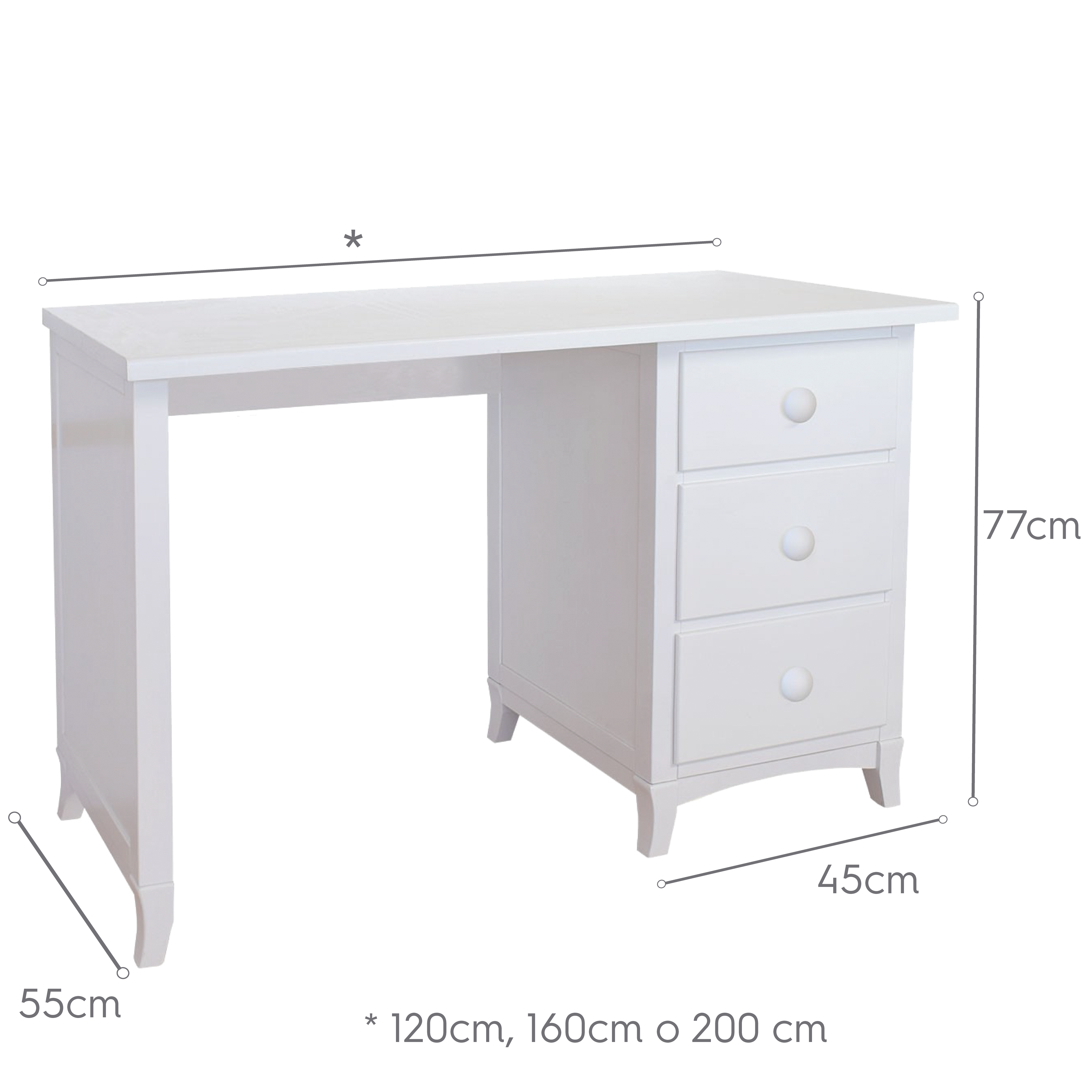 Esta bela secretária possui linhas rectas e simples perfeitas para criar um ambiente acolhente no quarto das crianças. Esta secretária foi criada com o propósito de ser uma móvel que favorece as ativiades lúdicas e de estudo, imprescíndivel para canalizar as mais positicas energias das crianças através das brincadeiras e do estudo. Ademais, vem equipada de um gaveteiro onde podem deixar guardadas todas as coisas mais necessárias para os momentos em que utilizem a secretária. Móvel fabricado em MDF e envernizado em branco dá um toque especial, integra-se perfeitamente ao quarto das crianças, fazendo dele um ambiente todo especial.