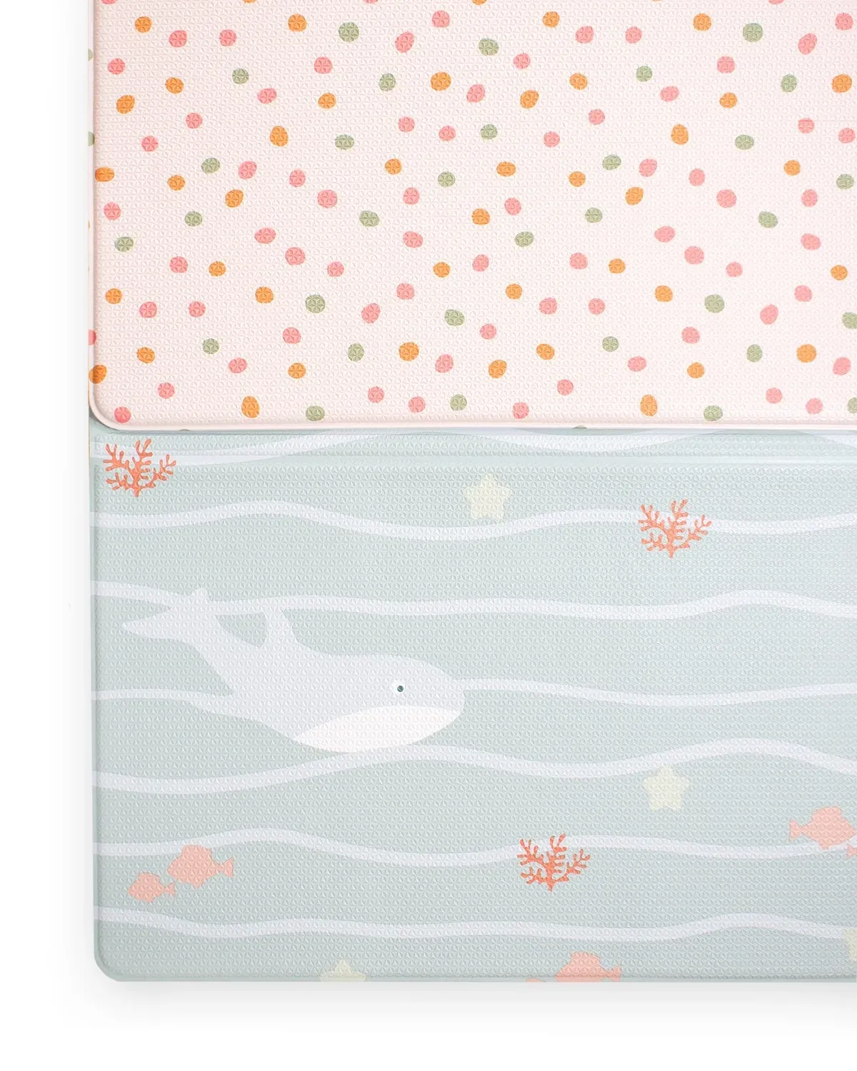 Tapete vinílico reversível, com designs divertidos em ambos os lados, ideal para que o teu pequeno desfrute do seu primeiro espaço de brincadeira de forma cómoda e segura.